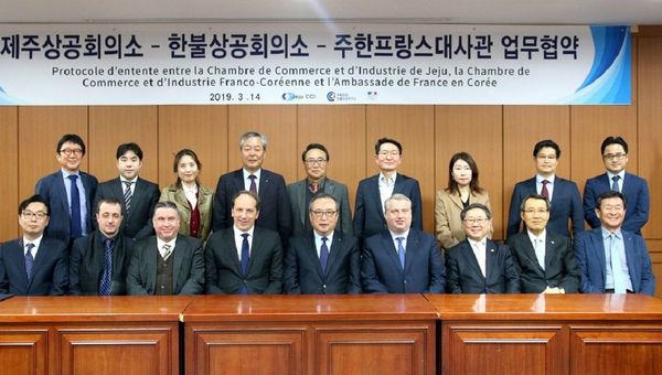 Signature du Protocole d’Entente entre la Chambre de Commerce et d’Industrie de Jeju, la FKCCI et l’Ambassade de France.