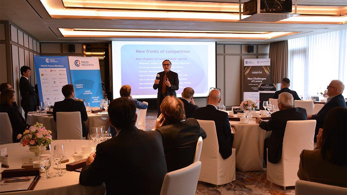 Organized with the kind support of FKCCI member and luxury market expert Bluebell Group, and introduced by Mr. Daniel Mayran, head of the Luxury Committee and Chairman of Bluebell Korea, the event invited participants to listen to the insights of world-renowned expert Dr. Jean-Noël Kapferer. HEC Paris and Kellogg Business School graduate, Dr. Kapferer, has researched luxury for many years and taught in numerous countries, including Korea. Armed with his cutting-edge knowledge of the field in Europe and Asia, he delivered an insightful presentation to attendees, during which he addressed the key challenges ahead of the luxury sector: its positioning between uniqueness and diversity, its relation to time in a faster-paced world, the future social acceptance of luxury, and the challenges of selective distribution.