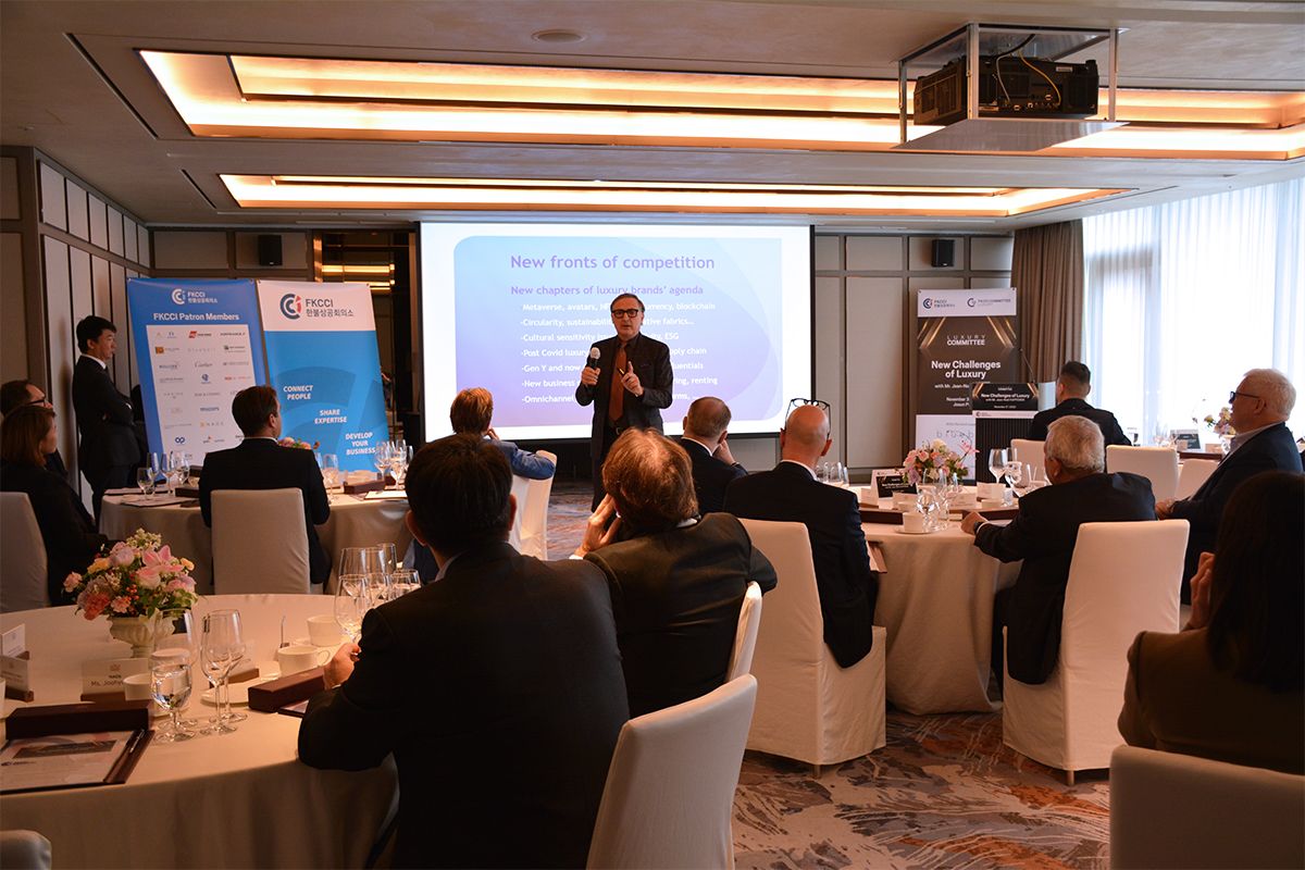 Organized with the kind support of FKCCI member and luxury market expert Bluebell Group, and introduced by Mr. Daniel Mayran, head of the Luxury Committee and Chairman of Bluebell Korea, the event invited participants to listen to the insights of world-renowned expert Dr. Jean-Noël Kapferer. HEC Paris and Kellogg Business School graduate, Dr. Kapferer, has researched luxury for many years and taught in numerous countries, including Korea. Armed with his cutting-edge knowledge of the field in Europe and Asia, he delivered an insightful presentation to attendees, during which he addressed the key challenges ahead of the luxury sector: its positioning between uniqueness and diversity, its relation to time in a faster-paced world, the future social acceptance of luxury, and the challenges of selective distribution.