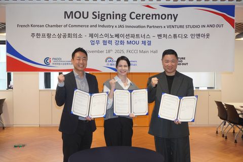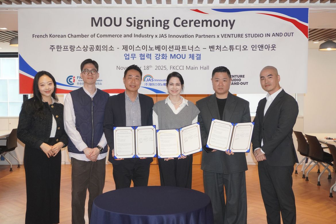 A new chapter begins for the France–Korea innovation ecosystem. The French-Korean Chamber of Commerce and Industry (FKCCI), JAS Innovation Partners Co., Ltd. (JASIP), and In&Out Corporation have officially signed a tripartite MOU at the FKCCI office a strategic alliance designed to open global doors for startups across both countries.