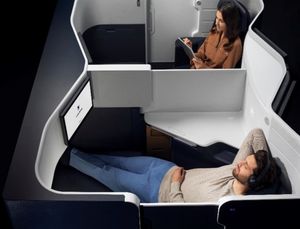 Discover our new long-haul Business cabin. Equipped with 48 seats, that can be transformed into full-flat beds, this cabin is the height of elegance and comfort. Each seat has a sliding door to create a totally private space.