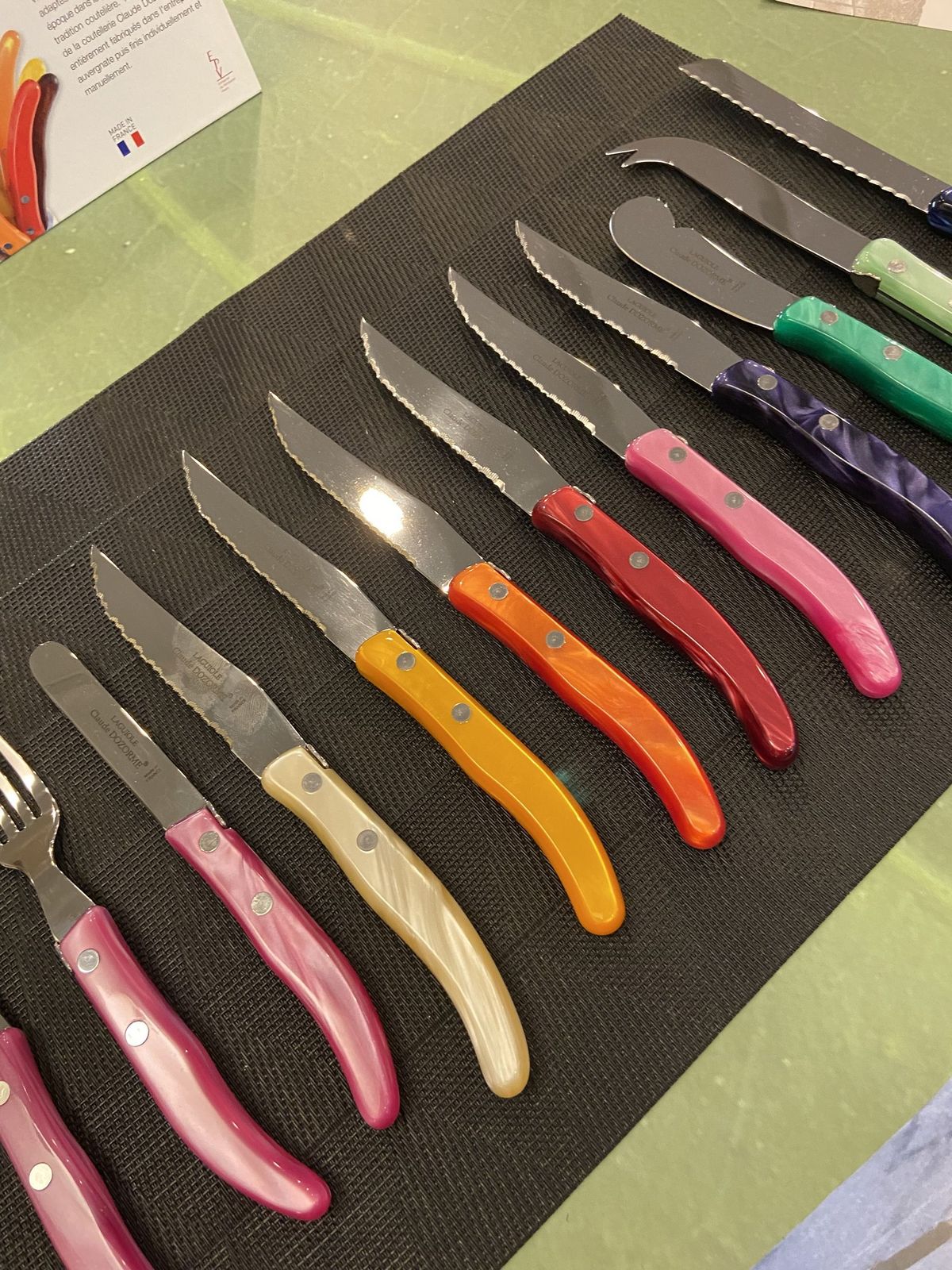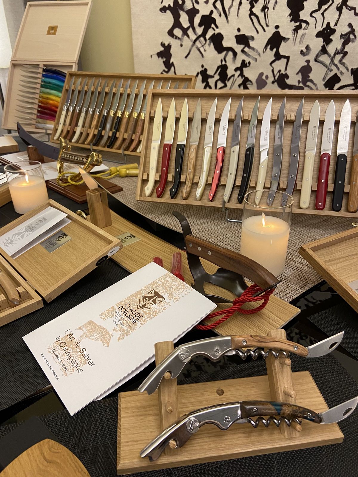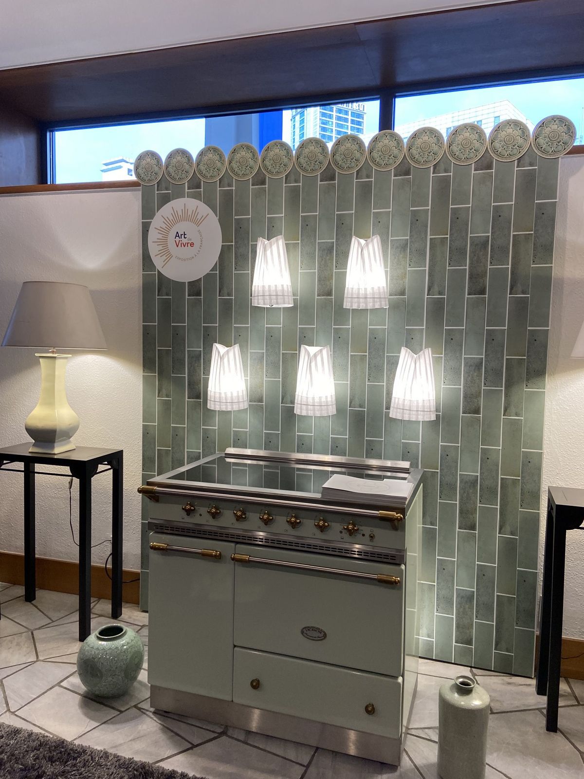 The exhibition included the following products and brands: cutlery from Claude Dozorme, tableware from Non Sans Raison, electric oven range from Lacanche, furniture from Ligne Roset, crystal pieces from Baccarat, objects from Ateliersavant, outdoor furniture from Fermob, bedding from Pyrenex and tableware from Haviland.
