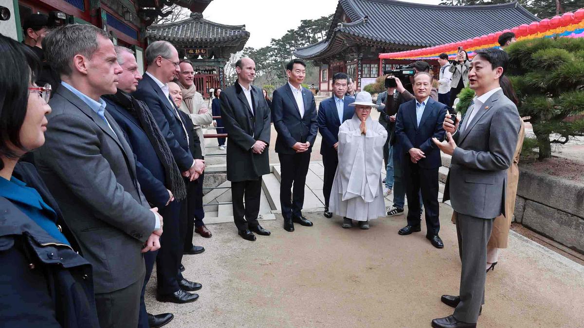 During their visit to Jingwan Temple, the foreign investors experienced traditional temple culture and following the visit, they had the occasion to share the challenges they encounter in practice, delving into issues encompassing renewable energy like offshore wind energy and nuclear energy, skilled talent acquisition and retention, and logistics.