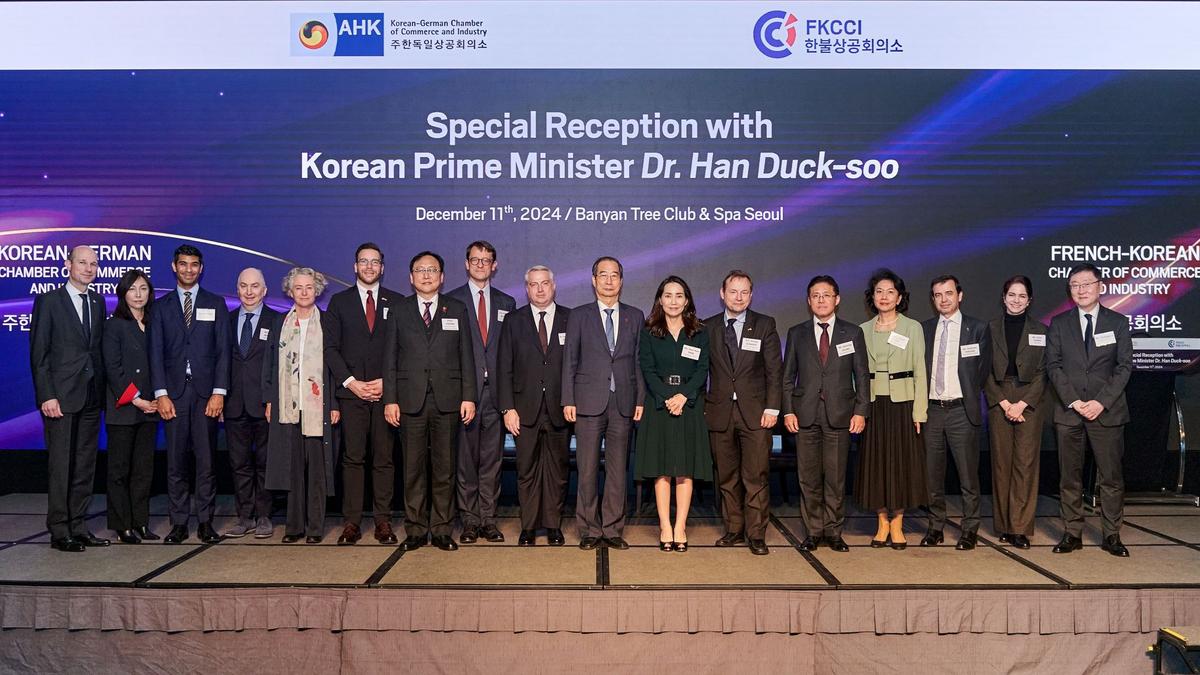 The French-Korean Chamber of Commerce and Industry (FKCCI) and the The Korean-German Chamber of Commerce and Industry (KGCCI) co-hosted a special reception with Korean Prime Minister Han Duck-soo on December 11 in Seoul, South Korea.