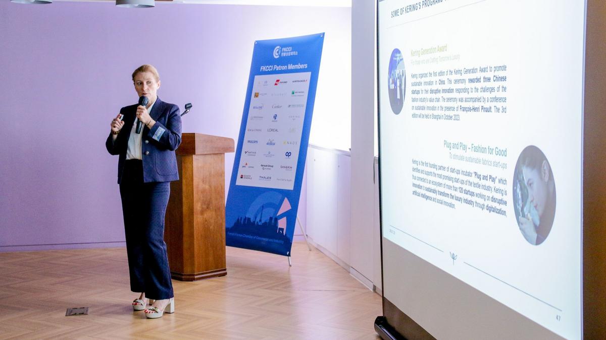 Mr. David-Pierre JALICON, FKCCI Chairman and CEO of DPJ & Partners Architecture, warmly opened the event with a welcoming speech and introduced Mrs. Marie-Claire DAVEU, Chief Sustainability, and Institutional Affairs Officer at Kering as the esteemed keynote speaker for the occasion.