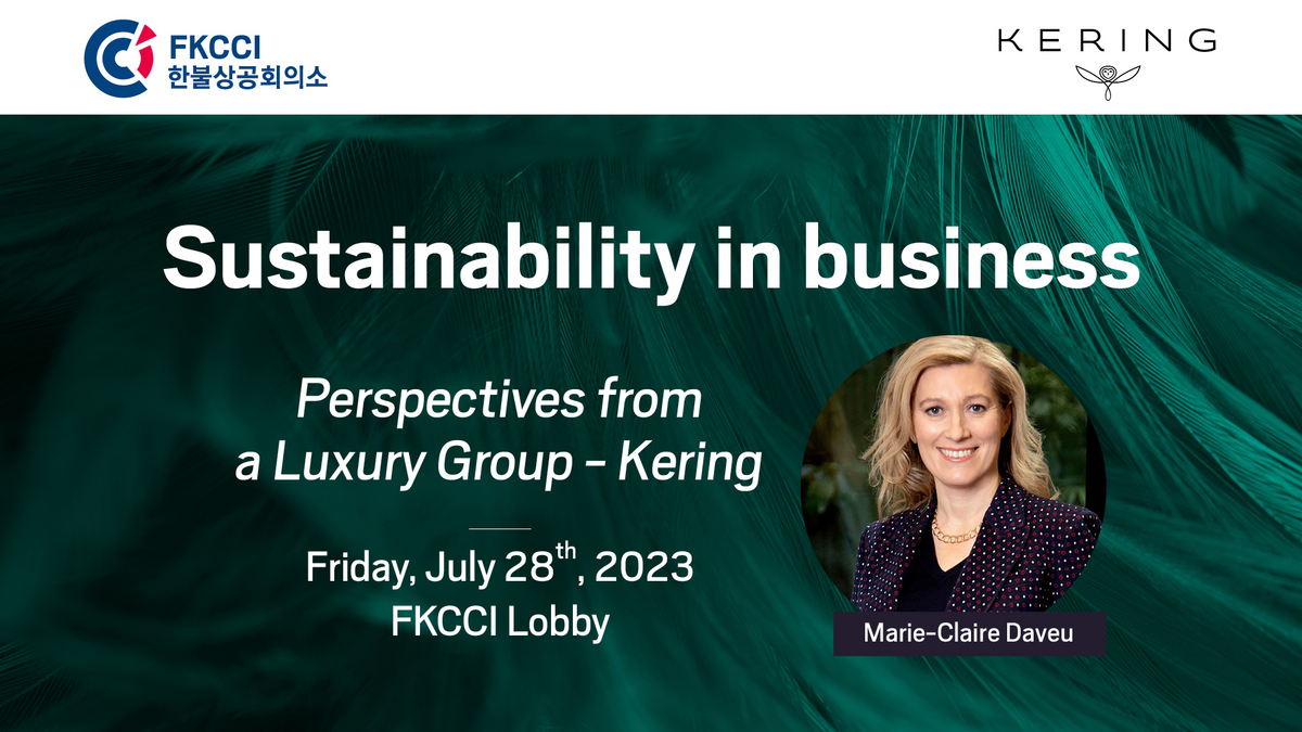 On July 28th, the French-Korean Chamber of Commerce and Industry (FKCCI), in collaboration with Kering, a global leader in the luxury industry, held an exceptional seminar focused on "Sustainability in Business." The event took place at the FKCCI office in the vibrant center of Gangnam, bringing together executive leaders and industry experts to explore sustainable practices in the luxury sector.