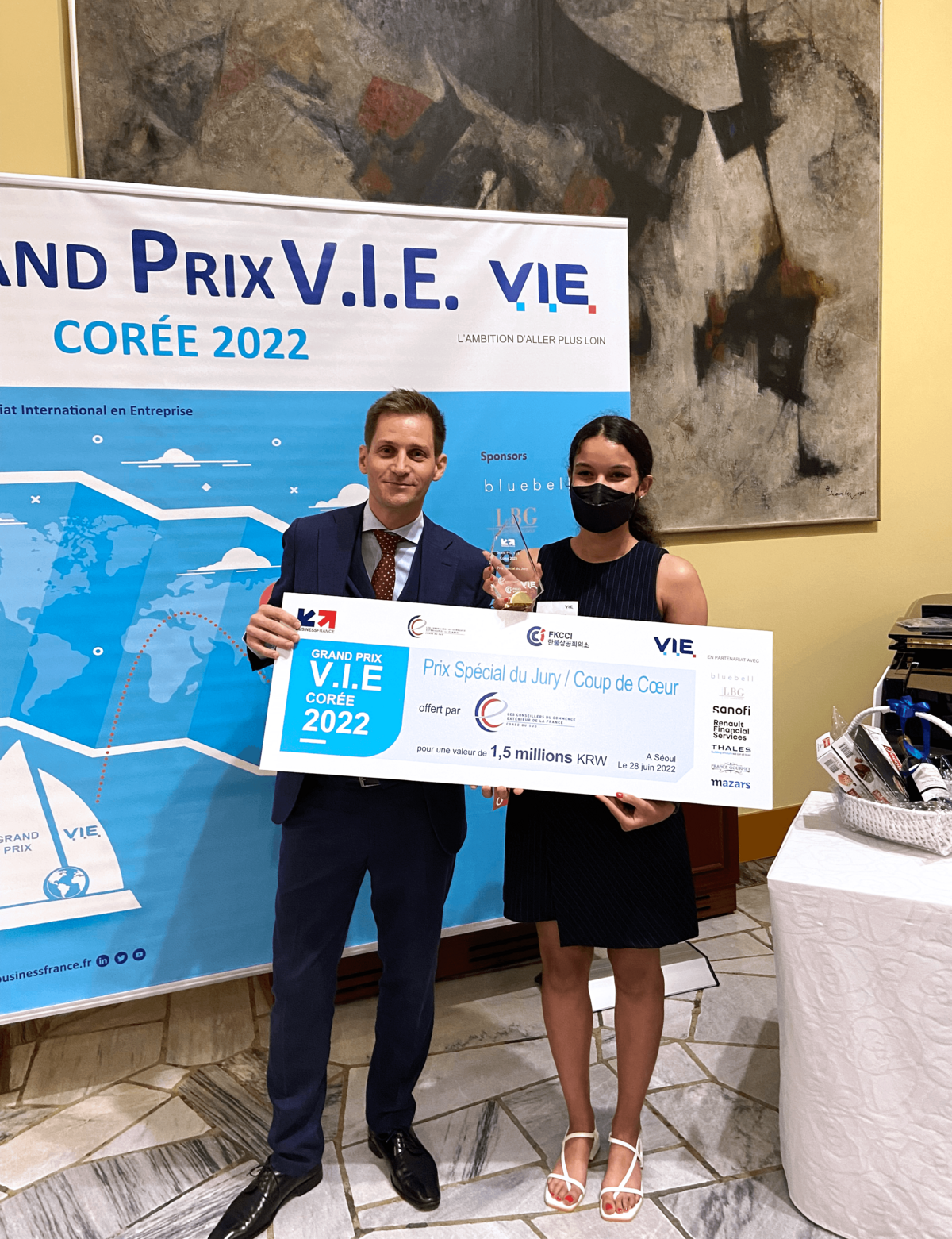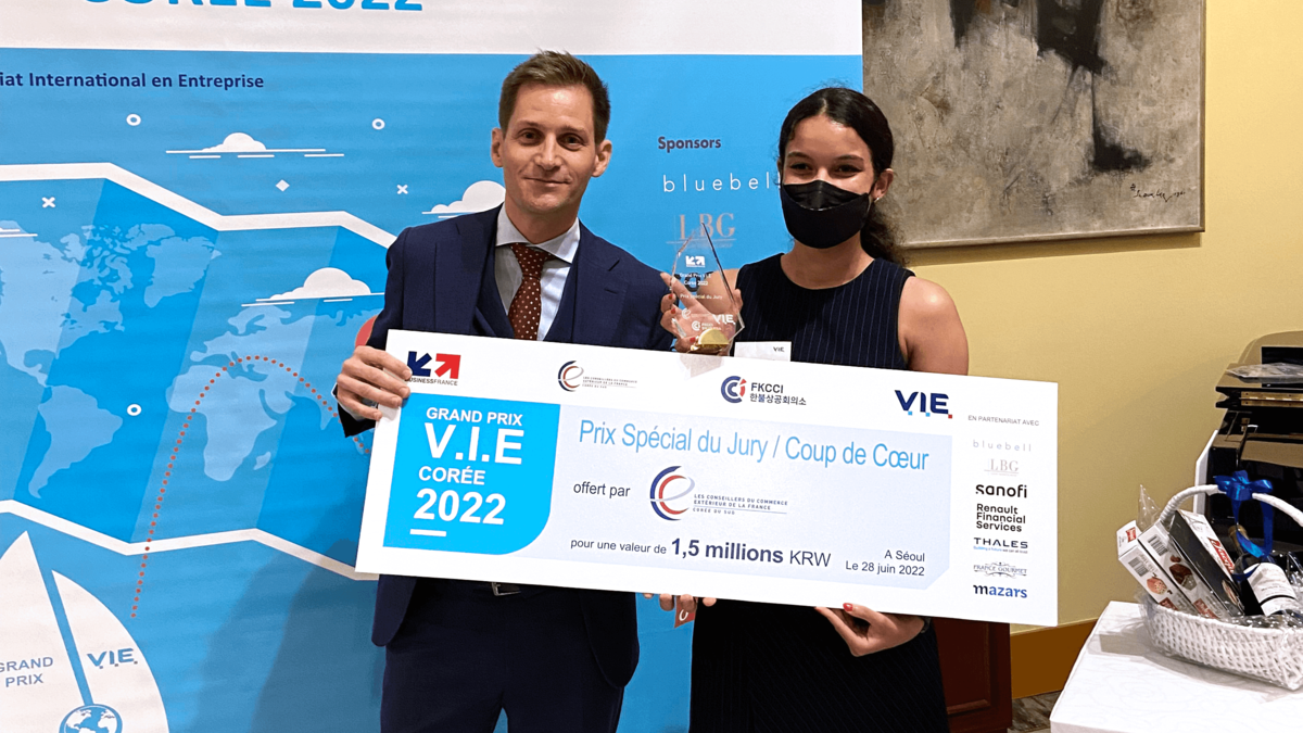 - Anaïs Pluche, qui effectue son volontariat au bureau Business France Corée, a reçu de la part des CCE le Prix Spécial du Jury, d’une valeur de ₩1,5 millions (€1 100 environ).