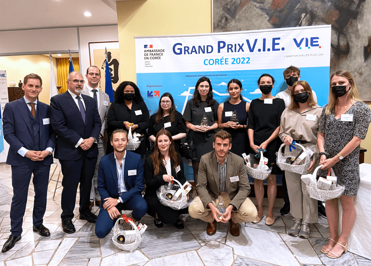 Chaque année, une quarantaine de jeunes professionnels met le cap sur la Corée du Sud pour y effectuer un Volontariat International en Entreprise (V.I.E.) ou en Administration (V.I.A.) – une opportunité unique pour les moins de 29 ans de travailler au sein d’une structure française implantée, ou en passe de s’implanter, à l’étranger. Afin de célébrer leurs réussites, la quatrième édition du Grand Prix V.I. Corée du Sud s’est tenue mardi 28 juin à la Résidence de France de l’Ambassade.