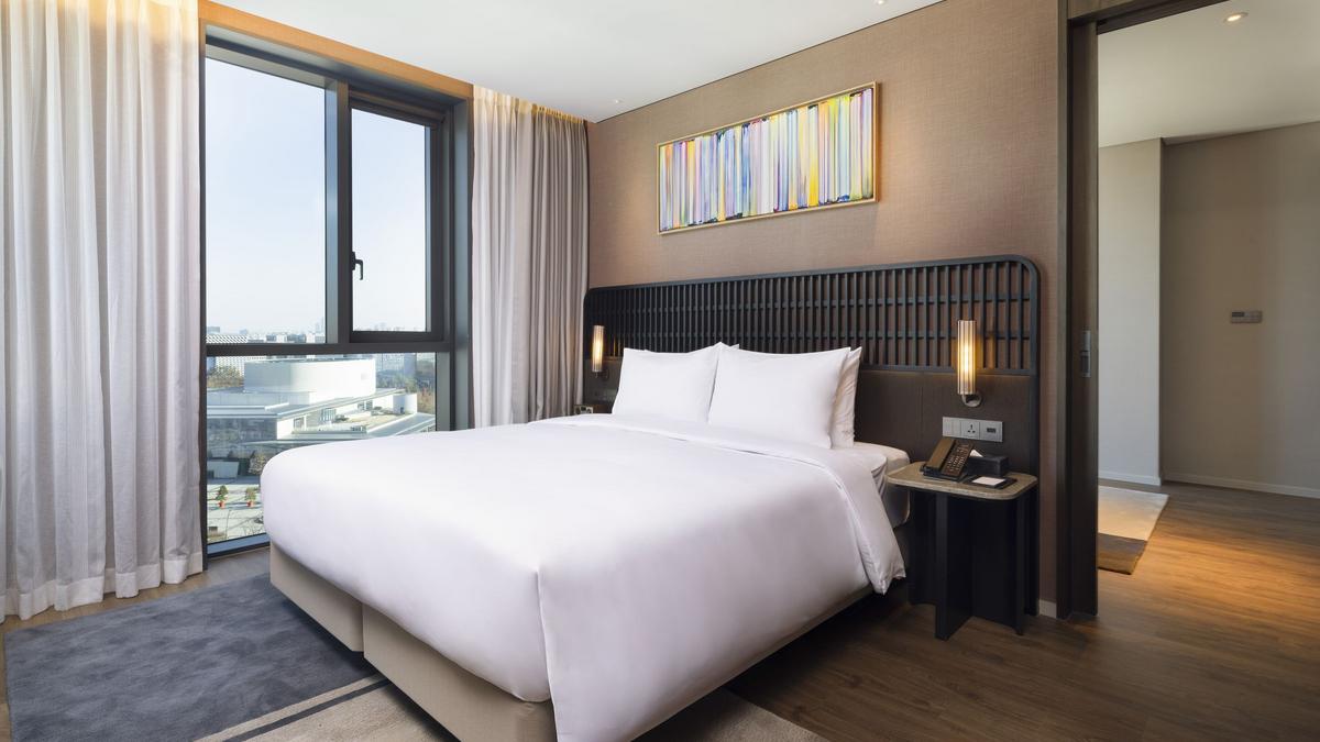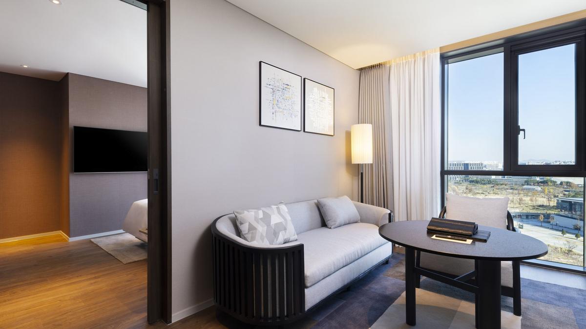 The hotel’s design draws inspiration from the dynamic and innovative spirit of Magok District, seamlessly incorporating subtle elements of Korean design, local motifs, and environmentally friendly materials. With 400 guestrooms and suites, the hotel offers versatile accommodation options – Junior and Executive Suites feature separate living areas, ideal for extended stays and business travellers, while Deluxe Triple Rooms provide convenience for families or groups. Select rooms offer stunning views of Seoul Botanic Park and the rooftop gardens, creating a serene retreat within the city.