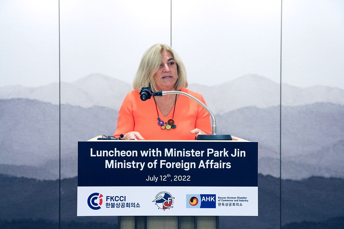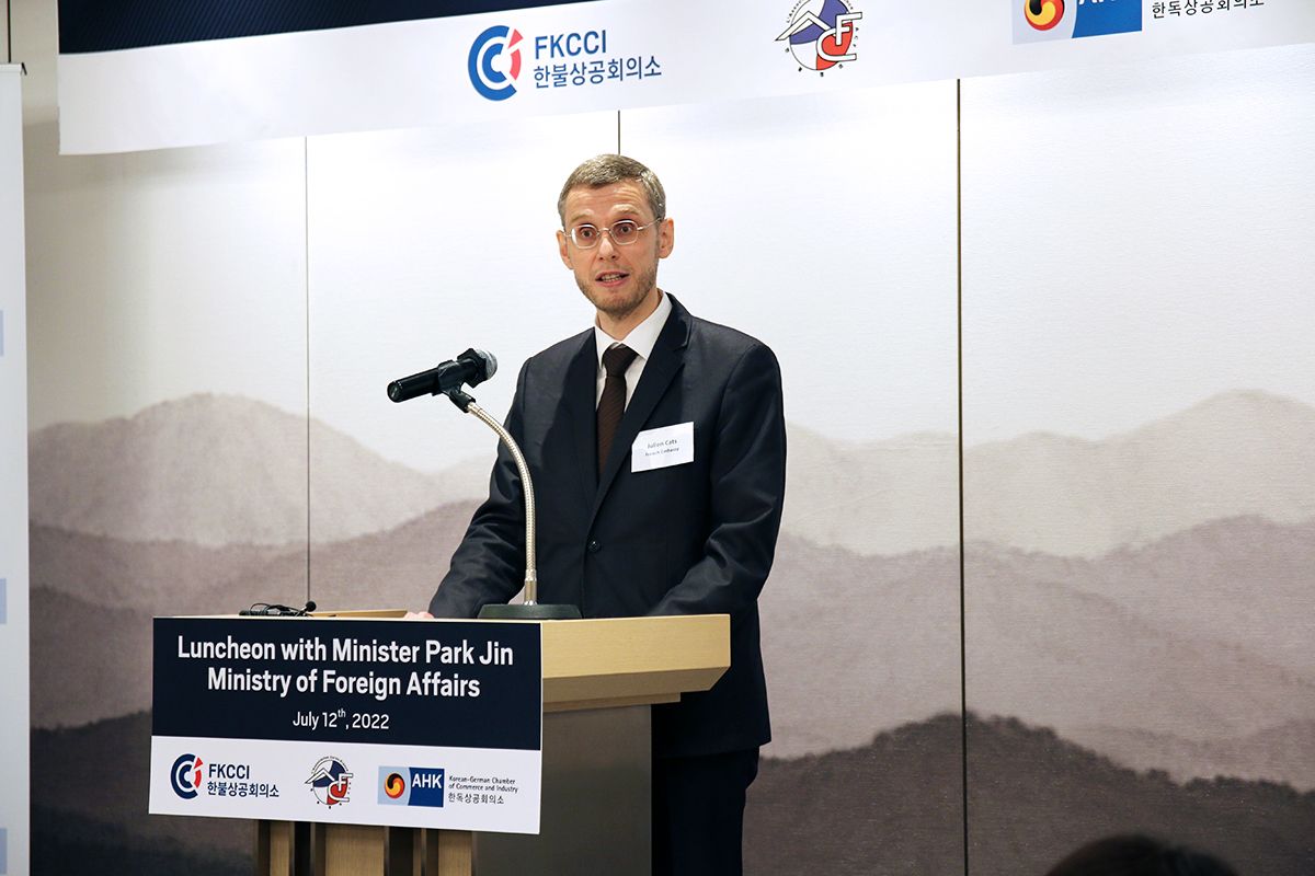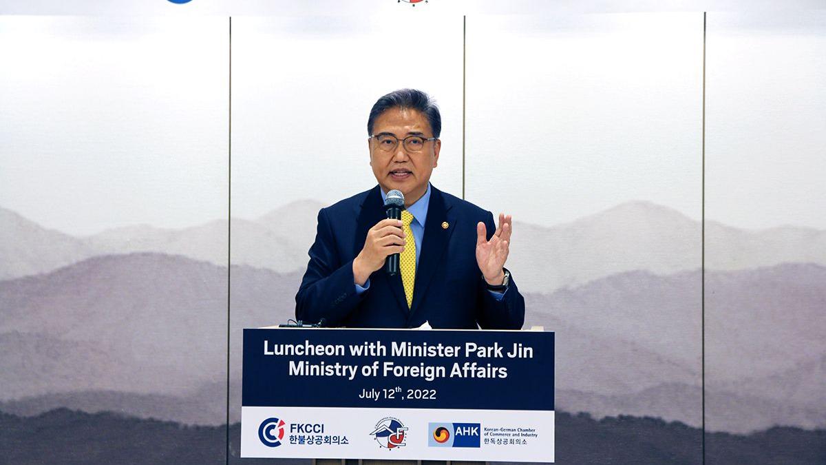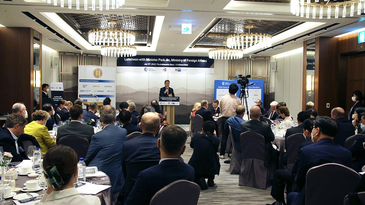 On July 12th, 2022, Korean Minister of Foreign Affairs Dr. Park Jin joined the French Korean Chamber of Commerce and Industry (FKCCI), the Korea-France Association (ACF), and the Korean German Chamber of Commerce and Industry (KGCCI) for an exclusive luncheon, to discuss the new administration’s foreign policy and Korea’s relations with France, Germany, and Europe.