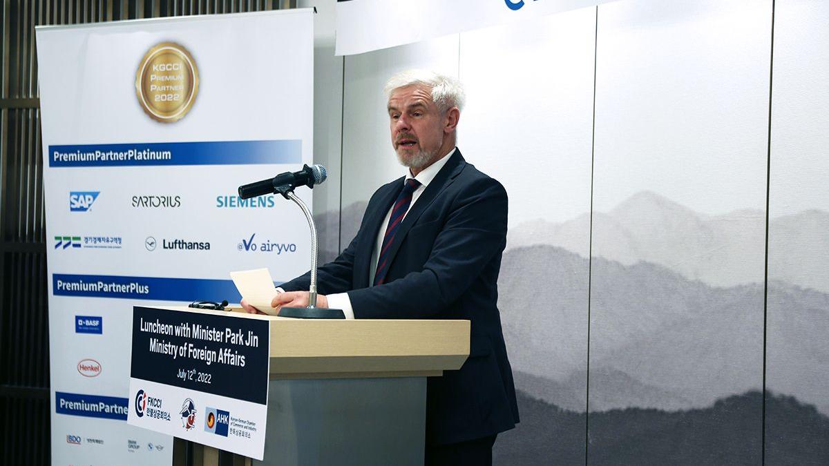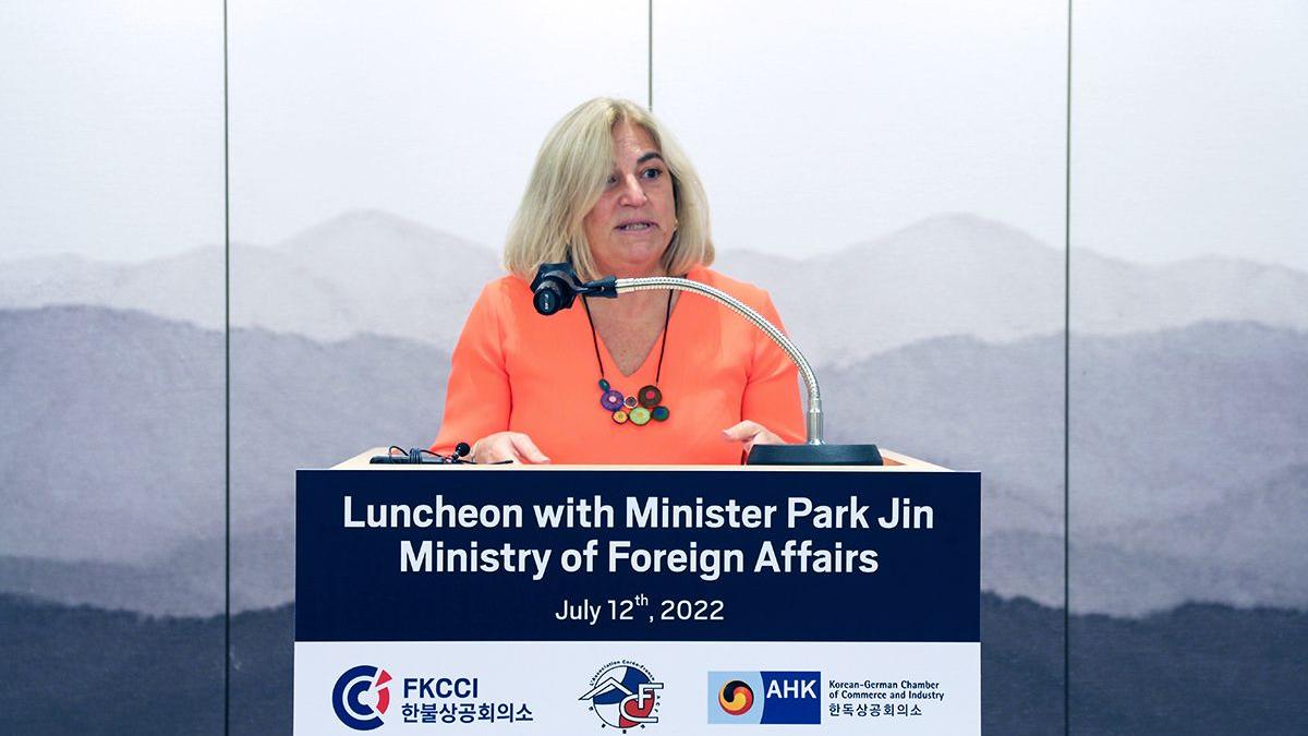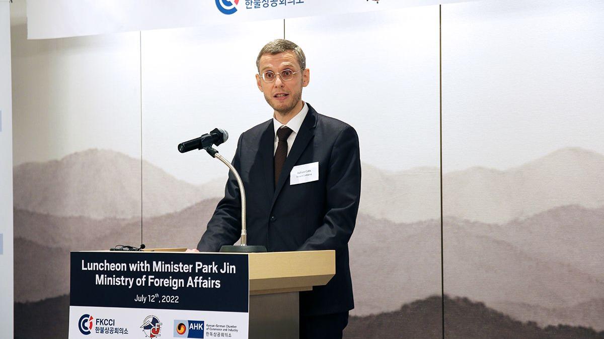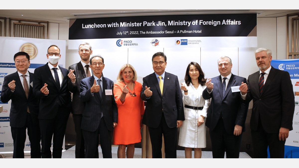On July 12th, 2022, Korean Minister of Foreign Affairs Dr. Park Jin joined the French Korean Chamber of Commerce and Industry (FKCCI), the Korea-France Association (ACF), and the Korean German Chamber of Commerce and Industry (KGCCI) for an exclusive luncheon, to discuss the new administration’s foreign policy and Korea’s relations with France, Germany, and Europe.