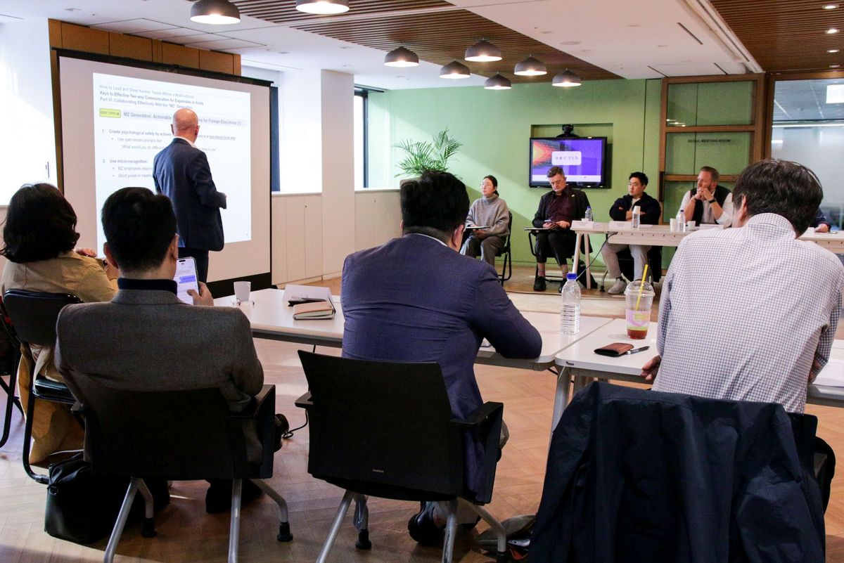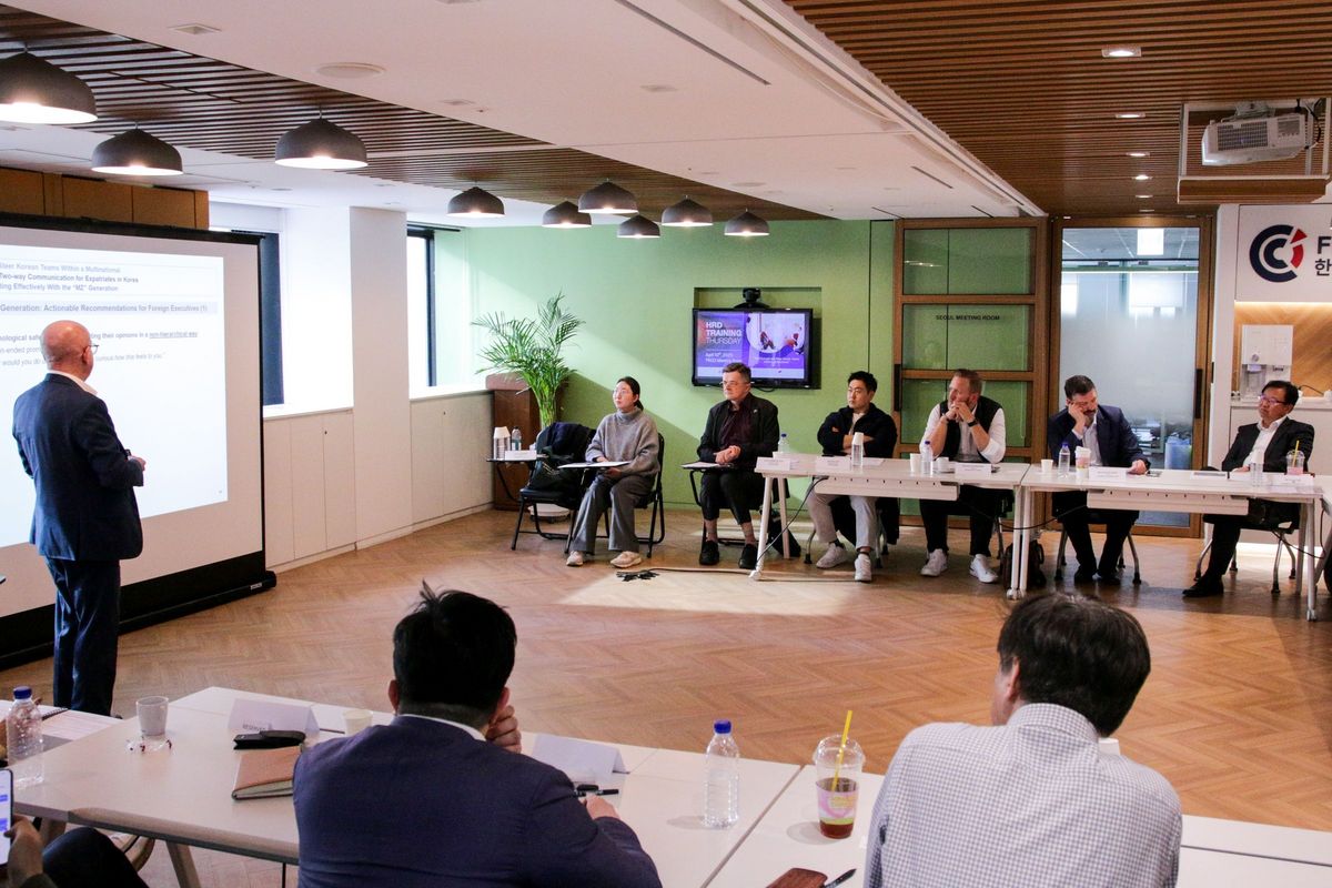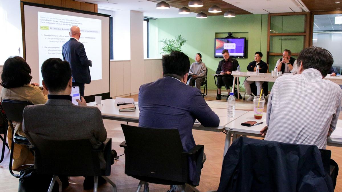The seminar focused on the common challenges expatriate managers face when leading Korean teams, especially the lack of two-way communication in the workplace. Through a cross-cultural lens, the session explored the reasons behind silence in Korean corporate culture such as fear of judgment, loss of face, and respect for hierarchy, while contrasting Western approaches of communication and leadership.