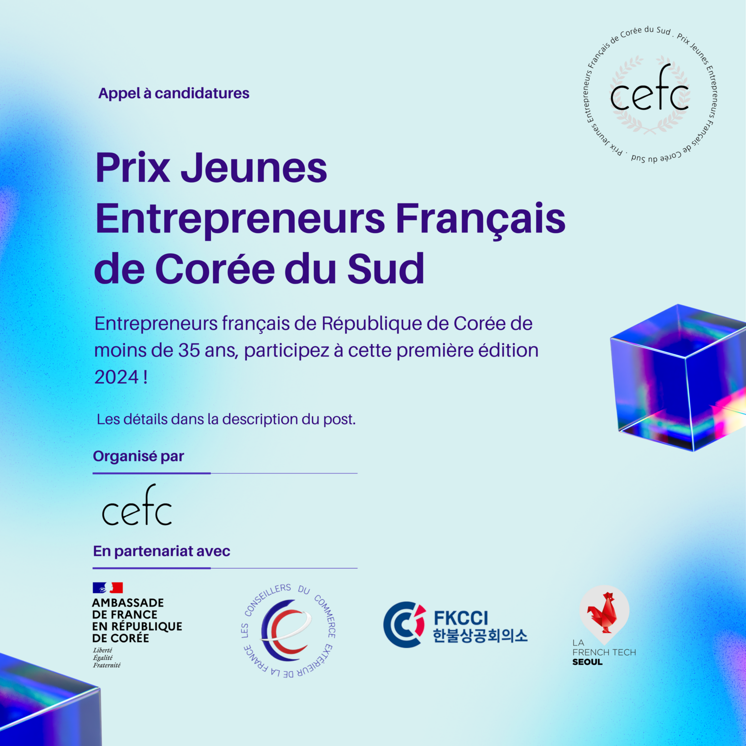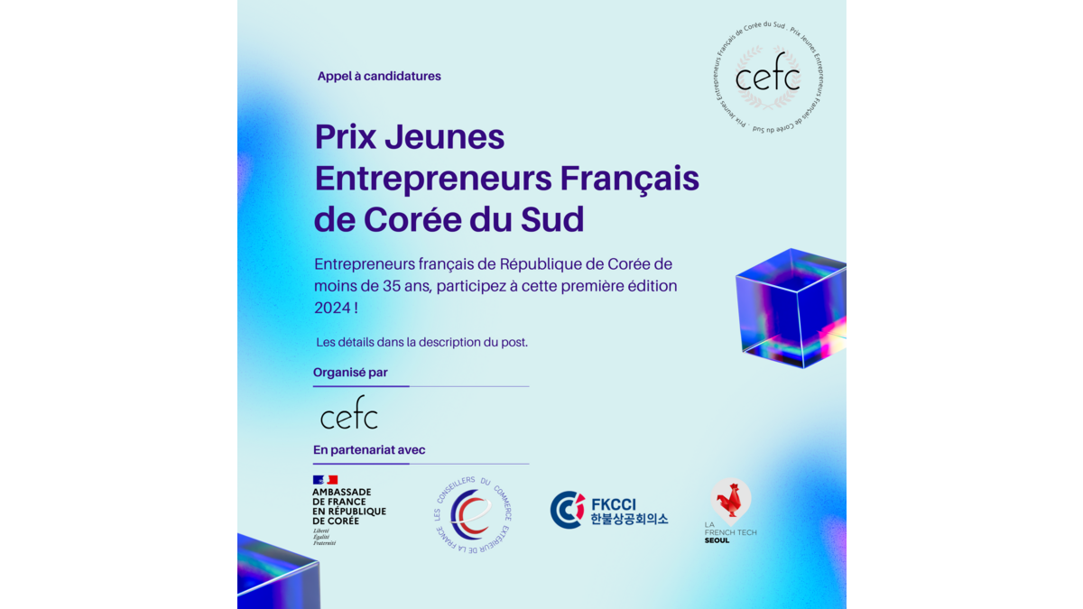 Entrepreneurs français de République de Corée de moins de 35 ans, participez à cette première édition 2024 du Prix !