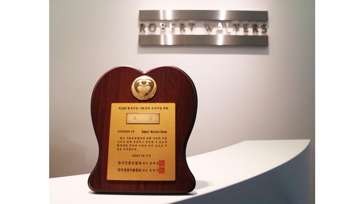 Robert Walters Korea received the title in recognition of leading social contribution and exemplary CSR initiatives, as well as its dedication to recruitment activities and the improvement of employment culture.
