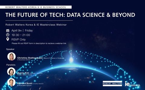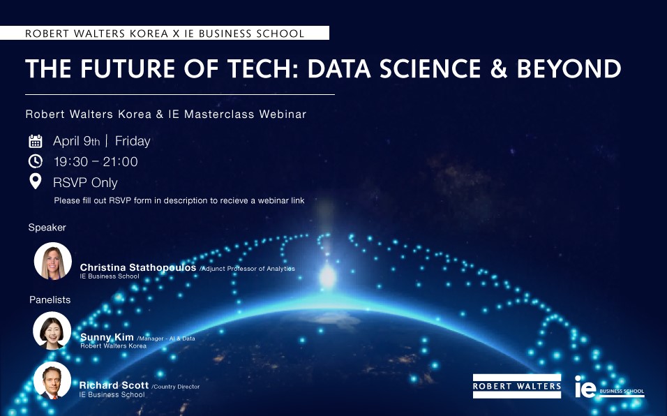Robert Walters Korea and IE Business School are hosting a webinar on ‘ The Future of Tech: Data Science & Beyond’ on April 9, 2021.
