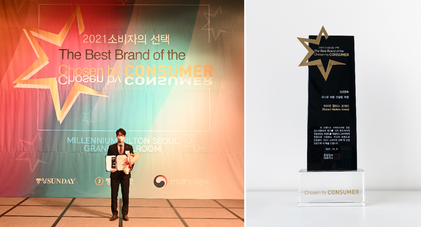 Robert Walters Korea Won the Consumer Choice Award 2021 in the Global Recruitment Consulting Category for the third consecutive year