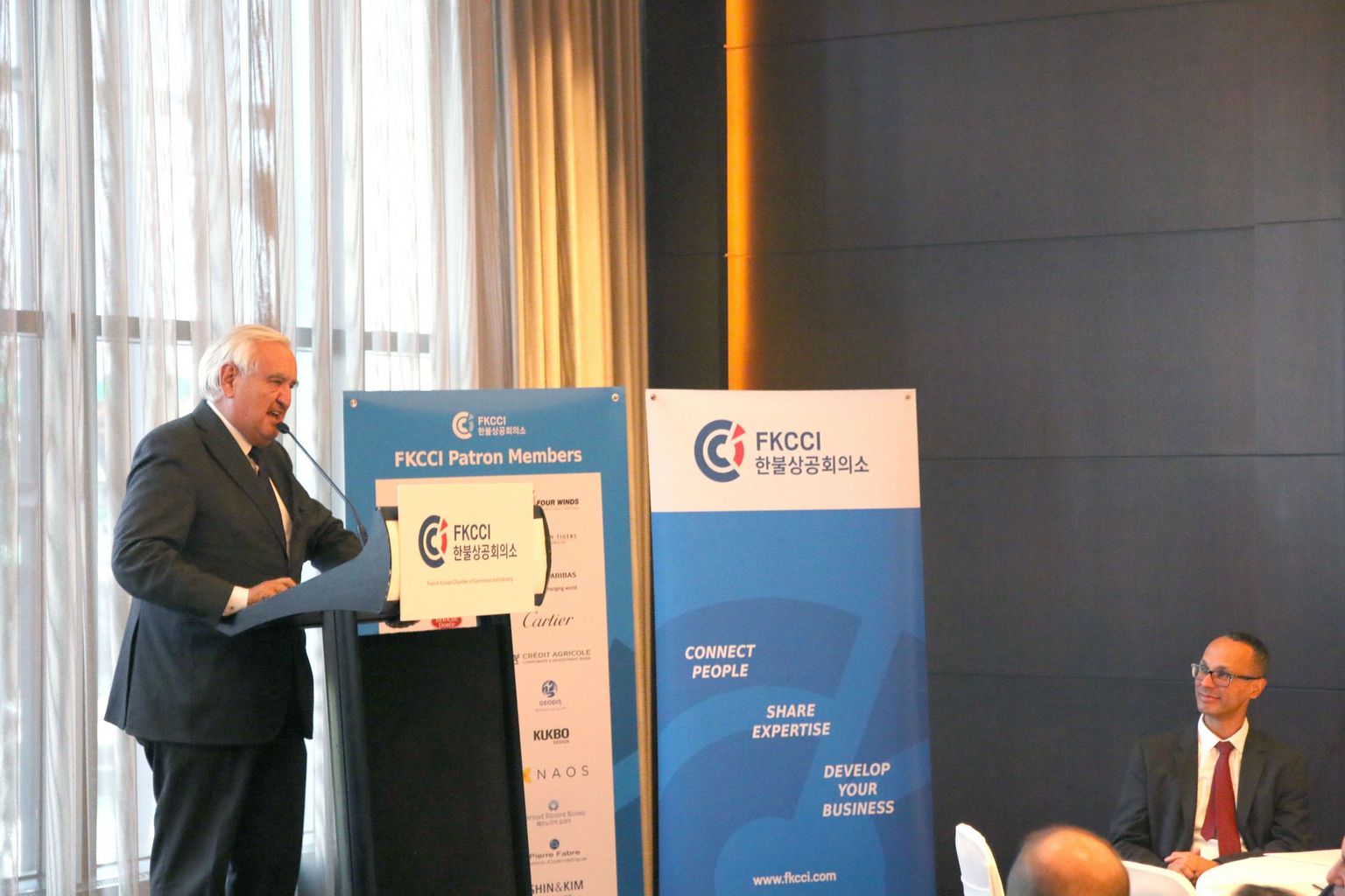 The French-Korean Chamber of Commerce and Industry was pleased to welcome Mr. Jean-Pierre Raffarin, former French Prime Minister, during the special Luncheon. As a grand connoisseur of Asian affairs Mr. Raffarin delivered during the luncheon a presentation themed on the relationship between Europe and Asia under the new global framework. The event saw around 70 participants representing companies from around the globe.