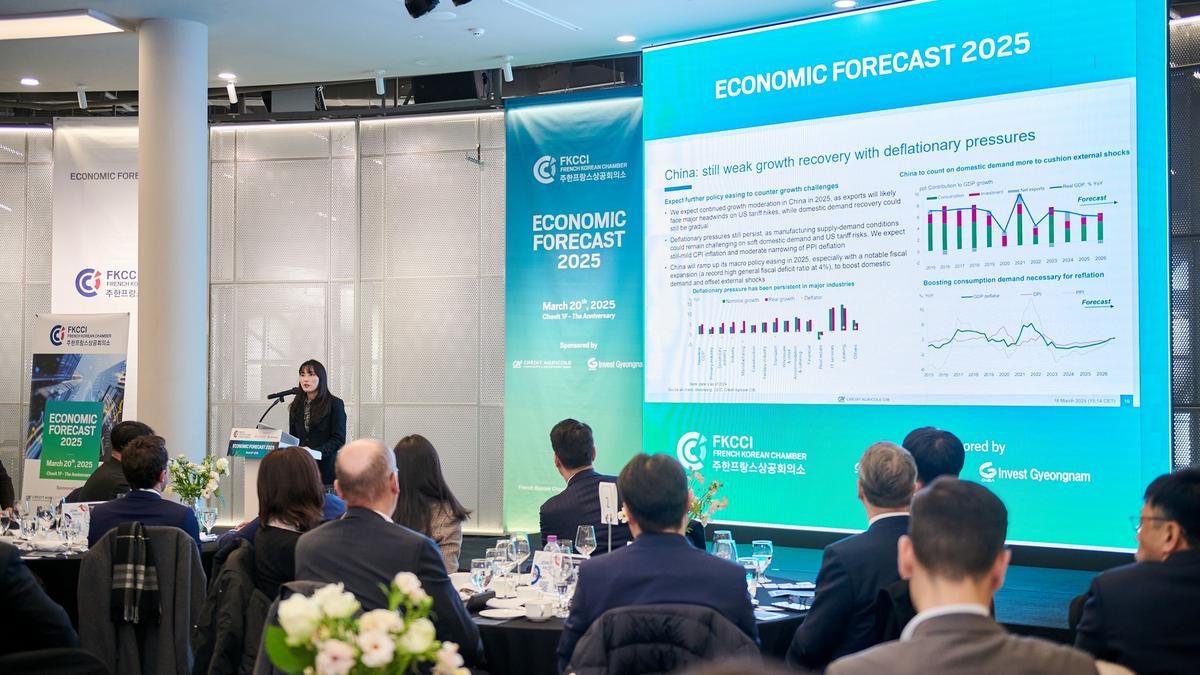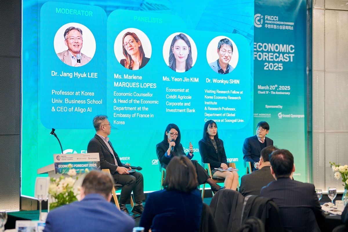 The French-Korean Chamber of Commerce and Industry (FKCCI) successfully hosted the 2025 Economic Forecast Seminar on Thursday, March 20, 2025, bringing together leading economic experts to assess Korea’s economic performance in 2024 and forecast key trends for the upcoming year. Against a backdrop of political uncertainties, global trade tensions, and long-term structural challenges, the seminar provided valuable insights into Korea’s economic resilience and future trajectory.