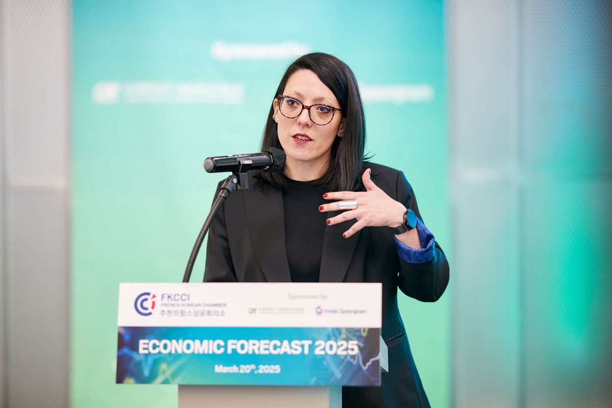 The seminar opened with welcome remarks by FKCCI CEO Ms. Sonia CHAIEB, followed by an opening speech from FKCCI Chairman Mr. David-Pierre JALICON. The first session featured expert presentations: Ms. Marlene MARQUES LOPES, Economic Counsellor & Head of the Economic Department at the Embassy of France in Korea, delivered an in-depth analysis of Korea’s economic outlook, while Ms. Yeon Jin KIM, Economist at Crédit Agricole CIB, shared insights into global economic trends.