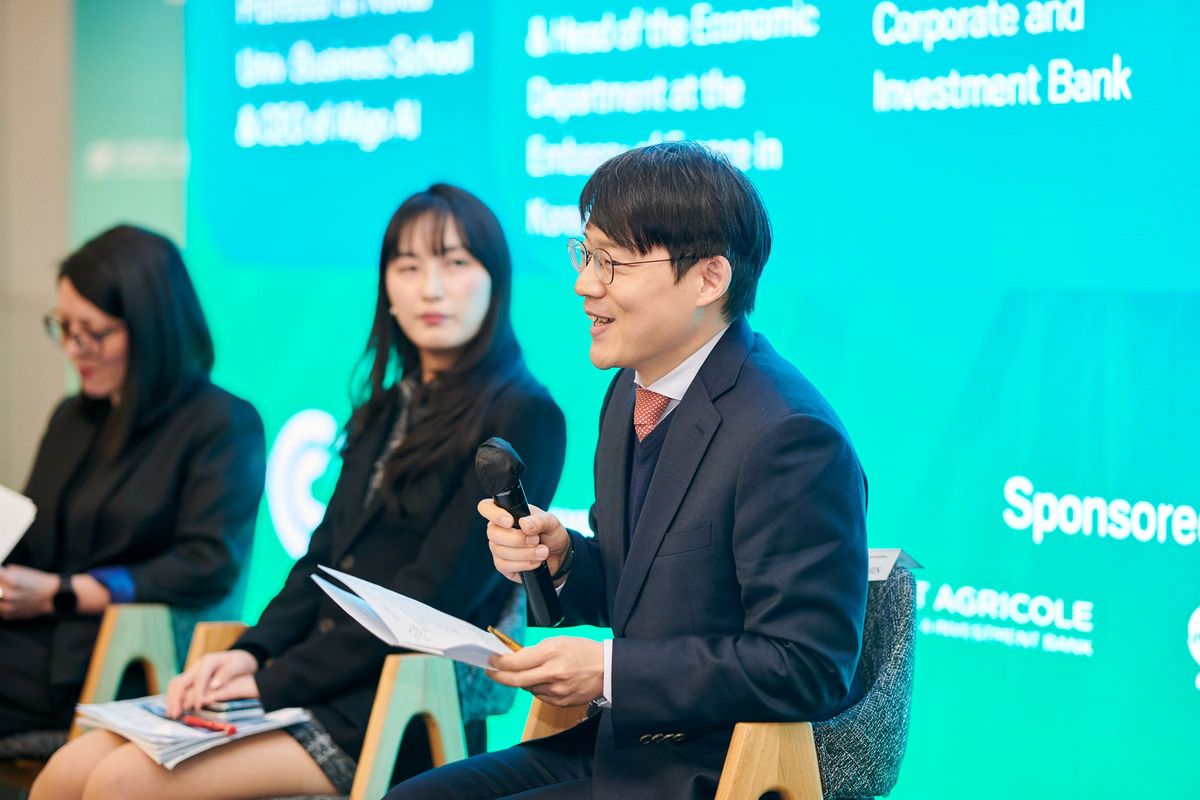 A panel discussion, moderated by Dr. Jang Hyuk LEE, Professor at Korea University Business School and CEO of AligoAI, further explored Korea’s economic prospects, featuring expert perspectives from Ms. MARQUES LOPES, Ms. KIM, and Mr. Wonkyu SHIN, Visiting Research Fellow at the Korea Economy Research Institute. The seminar concluded with a presentation from the Gyeongnam Investment & Business Agency, a key event sponsor alongside Crédit Agricole CIB. Attendees also engaged in meaningful networking opportunities during a seated lunch.