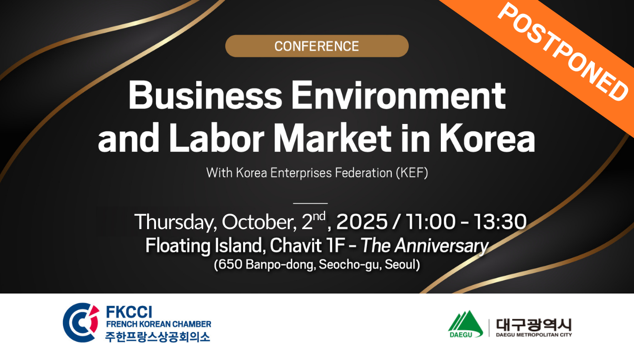 The FKCCI, in partnership with the Korea Enterprises Federation (KEF), is pleased to invite you to a special conference on the Korean business environment and labor market, to be held on Thursday, October 2nd, 2025, in Seoul. This event is proudly sponsored by Daegu Metropolitan City.