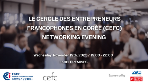 The French-Korean Chamber of Commerce and Industry (FKCCI) is pleased to host the next CEFC Dinner on Wednesday, November 19th, at its premises in Seoul.