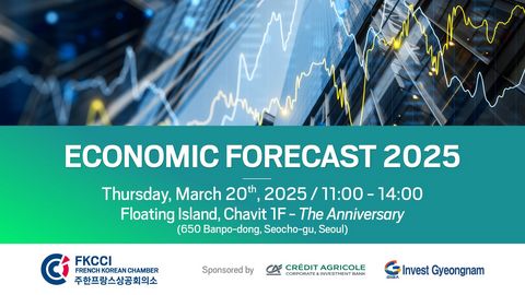 As your trusted partner in navigating the economic and geopolitical uncertainties, the French Korean Chamber of Commerce and Industry is proud to invite you to the 2025 edition of the Economic Forecast. Join us for a business luncheon on March 20th as experts on the Korean, Asian, and international markets will identify and analyze the economic trends and outlook of 2025. Get in-depth insights and up-to date economic data to improve planning, decision-making, and gain a competitive edge. Don't miss out on this exclusive event!