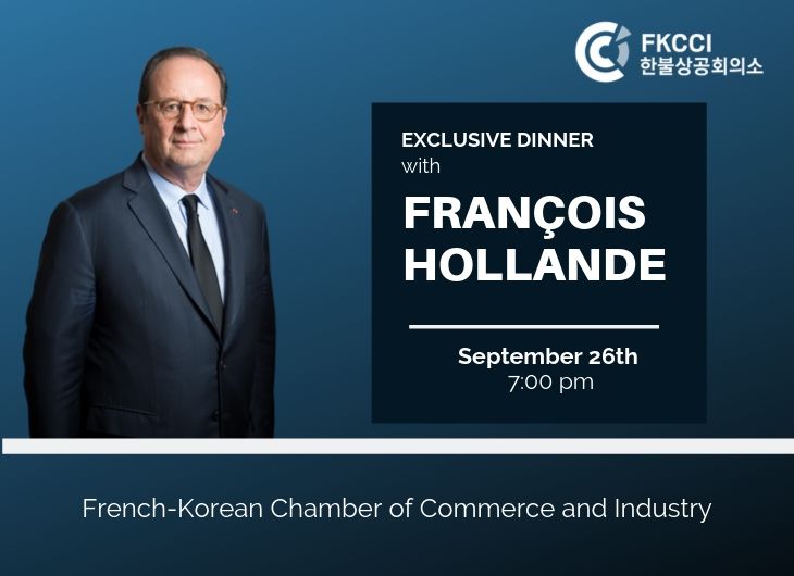 The French-Korean Chamber of Commerce and Industry (FKCCI) is honored to host a special dinner with the exceptional attendance of the former French President, Mr. François Hollande.