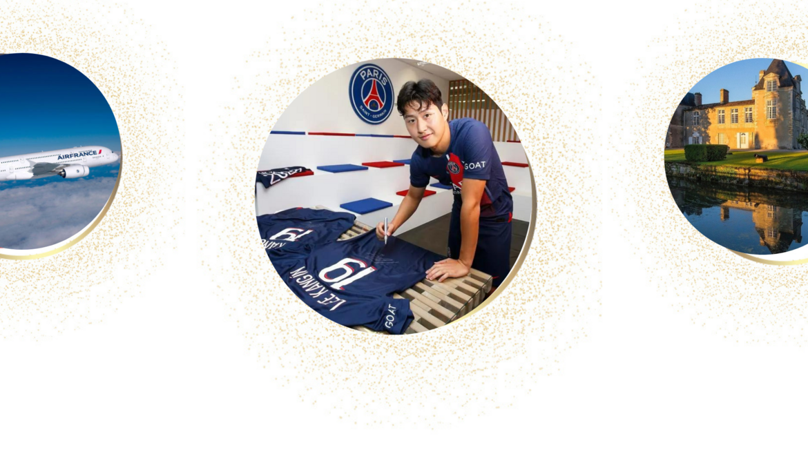 Become a champion and receive first-class prizes thanks to our wonderful Lucky Draw! Expect the most fabulous prizes from Air France business class flight tickets, luxury stays at hotels and castles, tickets for the upcoming Paris Olympic Games - totaling more than 150 gifts - and last but not least: Paris Saint-Germain football team jersey collectors signed by superstar player Lee Kangin (이강인)