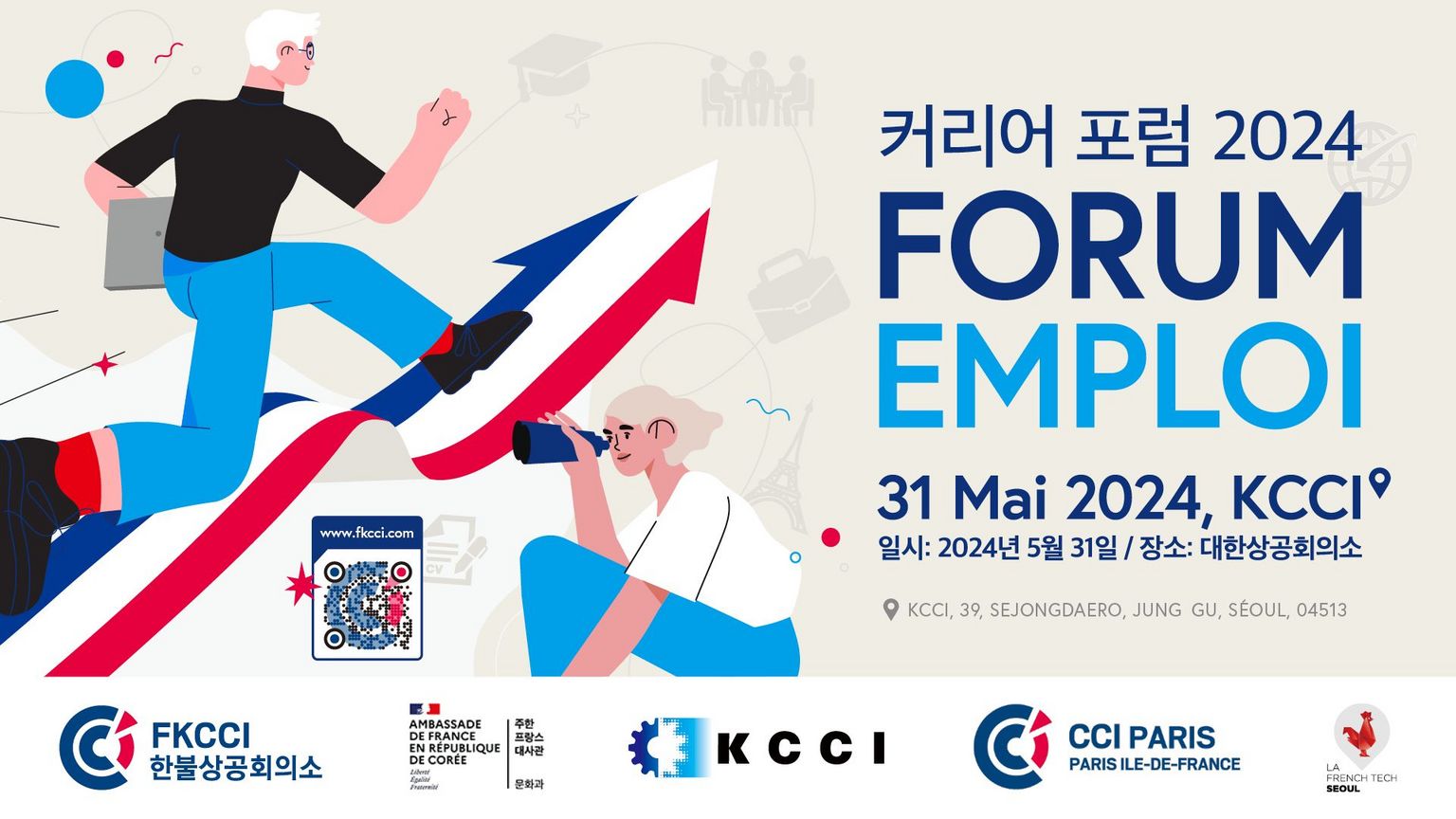 On Friday, May 31st, the French Korean Chamber of Commerce and Industry, the Cultural Service of the French Embassy in South Korea, the Korean Chamber of Commerce and Industry (KCCI), the Paris Ile-de-France Chamber of Commerce and Industry (CCIP), and La French tech Seoul, invite you to the Forum Emploi 커리어포럼 2024 taking place at the KCCI Grand Hall.