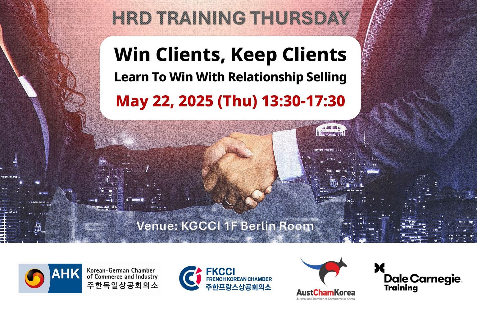 Join us for an engaging afternoon at HRD Training Thursday: Win Clients, Keep Clients on Thursday, May 22 at the KGCCI office. This seminar is tailored for sales professionals and managers looking to strengthen their relationship-selling skills. Through two focused modules, you'll learn how to create sales opportunities and identify client needs effectively. Open to KGCCI, FKCCI, and AustCham members at a special rate.