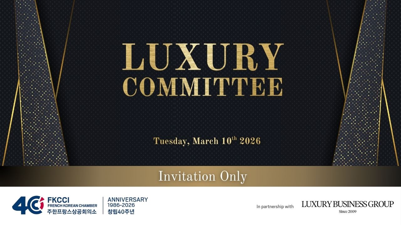 주한프랑스상공회의소(FKCCI)는 2026년 3월 10일(화) 오후 4시 30분에 개최되는 Luxury Committee 차기 회의에 회원 여러분을 초대합니다.