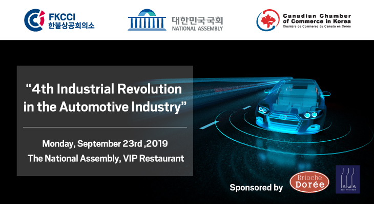 After its last event in July related to the Tech Leaders, FKCCI continue to explore the 4th Industrial Revolution by focusing on the sector of the Automotive industry. In collaboration with the Canadian Chamber, FKCCI is honored to invite you to this special event which will be held on September 23rd, 2019 at Korean National Assembly and will discuss about 'The 4th Industrial Revolution in the Automotive Industry'.