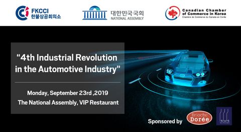 After its last event in July related to the Tech Leaders, FKCCI continue to explore the 4th Industrial Revolution by focusing on the sector of the Automotive industry. In collaboration with the Canadian Chamber, FKCCI is honored to invite you to this special event which will be held on September 23rd, 2019 at Korean National Assembly and will discuss about 'The 4th Industrial Revolution in the Automotive Industry'.