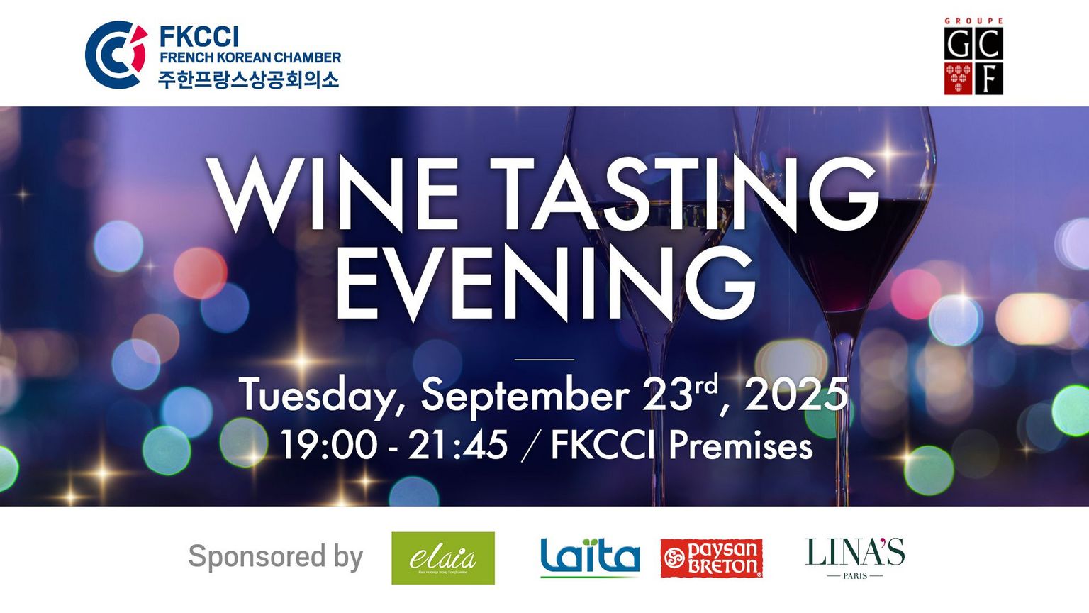 The FKCCI is pleased to invite you to its Wine Tasting & Networking Evening, an exclusive business event combining the art of French wine with the strength of France-Korea relations.