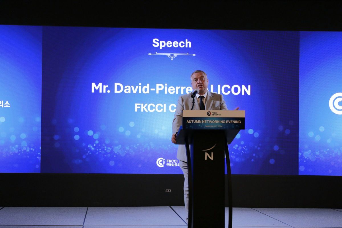 행사는 FKCCI 부회장 소니아 샤이엡(Mrs. Sonia Chaieb)의 연설로 시작되었고, 이어서 한불상공회의소(FKCCI)의 회장이자 D.P.J. & Partners Architecture의 CEO 다비드삐엘 잘리콩(David-Pierre JALICON)이 환영사를 전했습니다. 그는 프랑스와 한국 비즈니스 커뮤니티를 연결하는데에 있어 이 행사의 중요성을 강조하며, 한불상공회의소가 네트워킹 기회 창출과 양국 간의 경제적 유대를 강화시키기 위해 지속적인 노력을 할 것이라고 말했습니다.