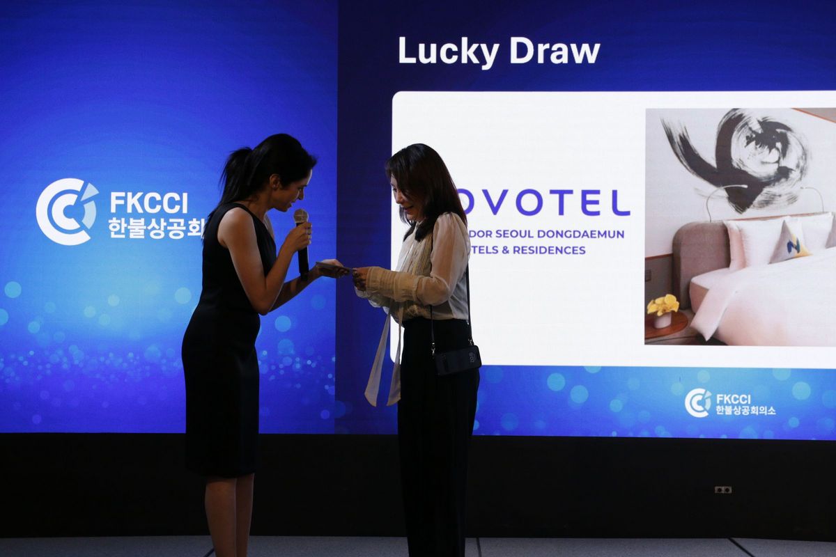 특히 이날 밤의 하이라이트는 럭키 드로우 추첨 행사였는데, 페르노리카 코리아(Pernod Ricard Korea)가 후원한 샤토 미뉘티 281(Château Minuty 281) 와인, 마르텔 꼬르동 블루(Martell Cordon Bleu) 코냑, 아코르 그룹(Accor Group)이 후원한 노보텔 앰배서더 서울 동대문 호텔 & 레지던스의 슈페리어 룸 숙박권, 그리고 로레알 그룹(L'Oréal Groupe)의 헬레나 루빈스타인 Prodigy 셀글로우 세럼(Helena Rubinstein Prodigy Cellglow The Deep Renewing Concentrate)이 경품으로 제공되었습니다. 모든 참석자들에게 감사하는 마음을 표하기 위해 로레알의 기프트 백 또한 선물로 제공되었습니다.