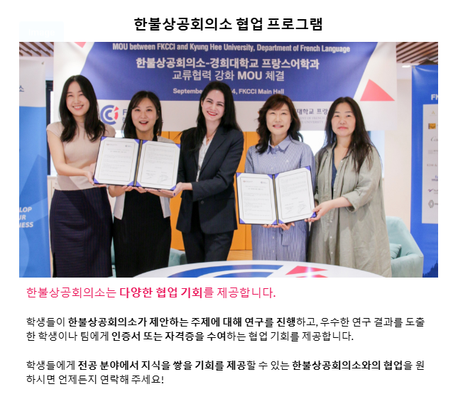 한불상공회의소는 2025년 5월 15일(목) 개최되는 커리어 포럼 2025에 불어과 대학생들을 초대합니다.