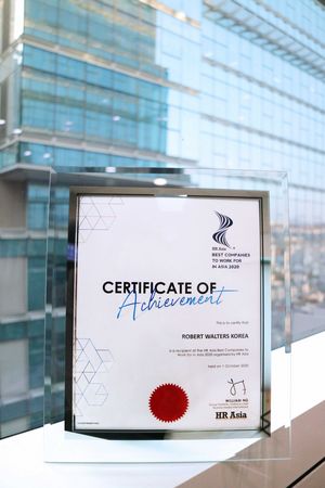 글로벌 인재 채용 전문 기업 로버트 월터스 코리아 (Robert Walters Korea)가 HR Asia 선정 ‘2020 가장 일하기 좋은 기업상’을 수상했다. HR 아시아는 아시아에서 가장 권위 있는 인사 전문 수상 기관으로, 본 상은 좋은 기업 문화와 인사 제도를 선도적으로 이끌어나가는 우수 기업에 수여되는 상이다.