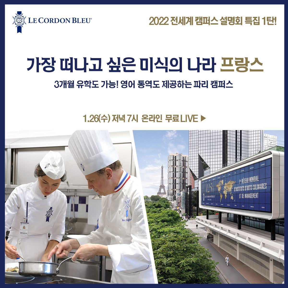 르 꼬르동 블루 한국지사는 이번 1월 26일 온라인 프랑스 요리유학 설명회를 개최할 예정이다.