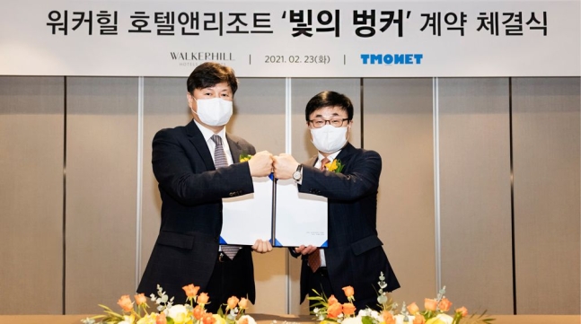 '빛의 벙커'를 운영하는 티모넷은 23일 워커힐 호텔앤리조트와 서울 전시관 개관을 위한 계약을 체결했다고 밝혔다. 서울 '빛의 벙커'는 광진구 그랜드 워커힐 서울 내 워커힐시어터에 오는 12월 개관 예정이다. 서울 '빛의 벙커'는 극장인 워커힐시어터의 정체성을 적극적으로 활용할 예정이다. 관람객은 수십 대의 빔프로젝터를 통해 벽면, 천장, 바닥에 투사된 미술사 거장들의 작품 사이를 자유롭게 거닐 수 있다고 티모넷은 설명했다.