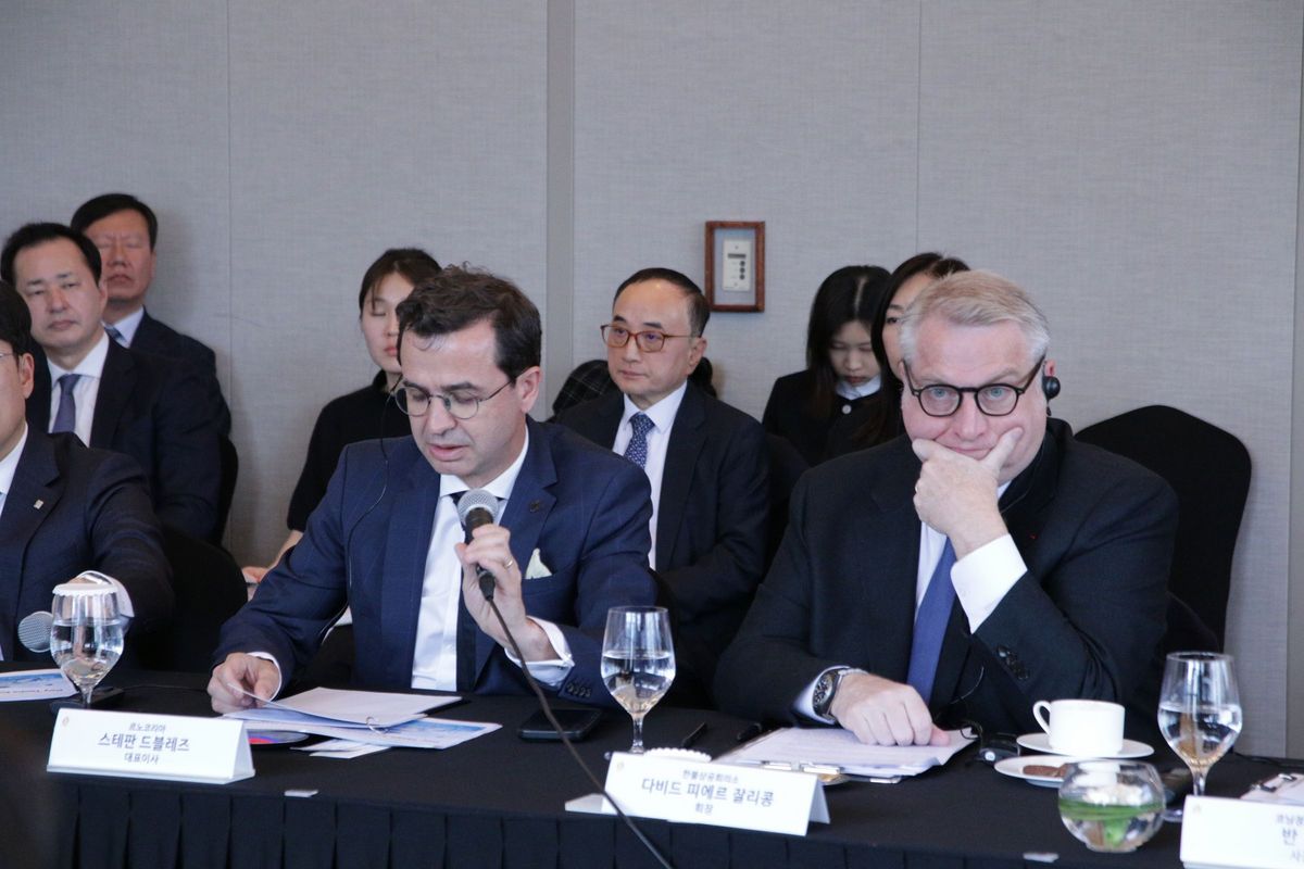 3월 24일, 산업통상자원부(MOTIE)는 서울 파르나스 호텔에서 주한 외국기업 커뮤니티와의 원탁회의를 개최했다. 이번 행사에는 주요 외국인 투자 기업의 CEO 및 주한 외국상공회의소 회장들이 참석했으며, 프랑스 비즈니스 커뮤니티를 대표하여 주한프랑스상공회의소 회장 다비드-피에르 잘리콩과 르노코리아 CEO 스테판 드블레즈가 참여했다. 이번 회의는 2025년 한국의 투자 정책을 논의하고, 한국 내 외국 기업들의 기대와 우려를 공유하는 열린 대화의 장이 되었다.