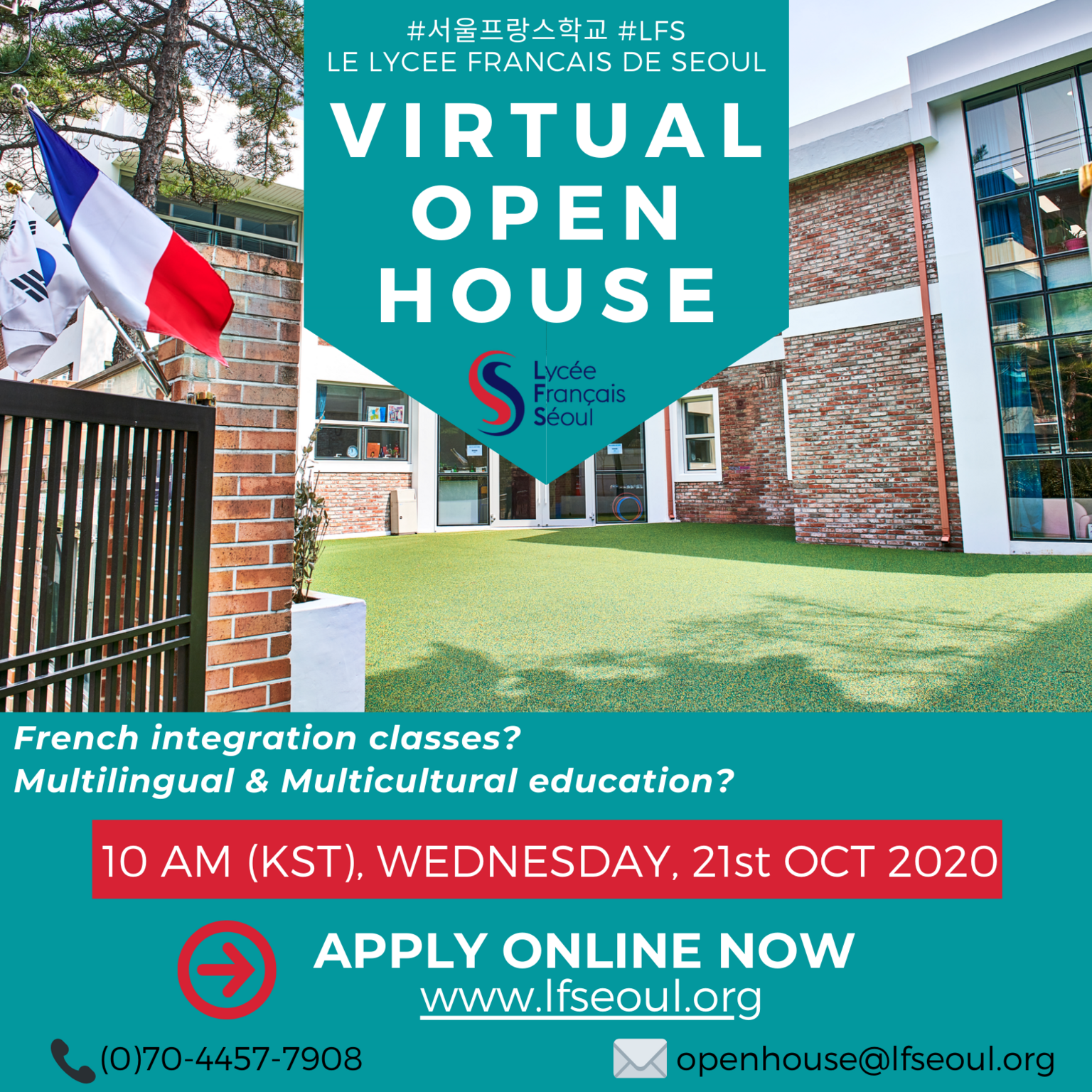 서울프랑스학교는 연간 상황에 따라 입학설명회를 진행하고 있습니다. 자세한 문의는 openhouse@lfseoul.org로 연락주시기 바랍니다.