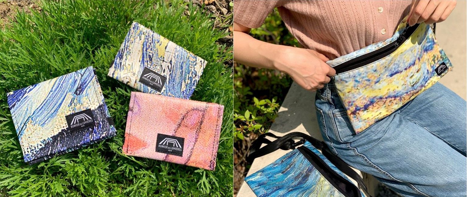 빛의 벙커는 2018년 개막작 '빛의 벙커 : 클림트'전, 이어 2019년 진행한 두 번째 전시 '빛의 벙커 : 반 고흐'전을 거치며 남은 폐현수막을 소각하지 않고, 누깍과의 협업을 통해 특별하고 컬러풀하면서도 실용적인 상품으로 재탄생시켰다. 수거한 폐현수막 중 상태가 양호한 부분만 엄격히 선별하여 사용하며, 모든 제품의 패턴이 각기 다르기 때문에 세상에 단 하나뿐이라는 소장 가치를 더한다. 그뿐만 아니라 현수막 소재 특유의 견고함과 내구성을 갖춰 실용적이다.