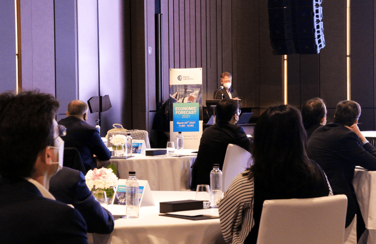 한불상공회의소는 지난 3월 24일 페어몬트 앰배서더 서울 호텔에서 50명의 기업 인사를 초청해 ‘2021 경제 전망’ 세미나를 개최했다.
