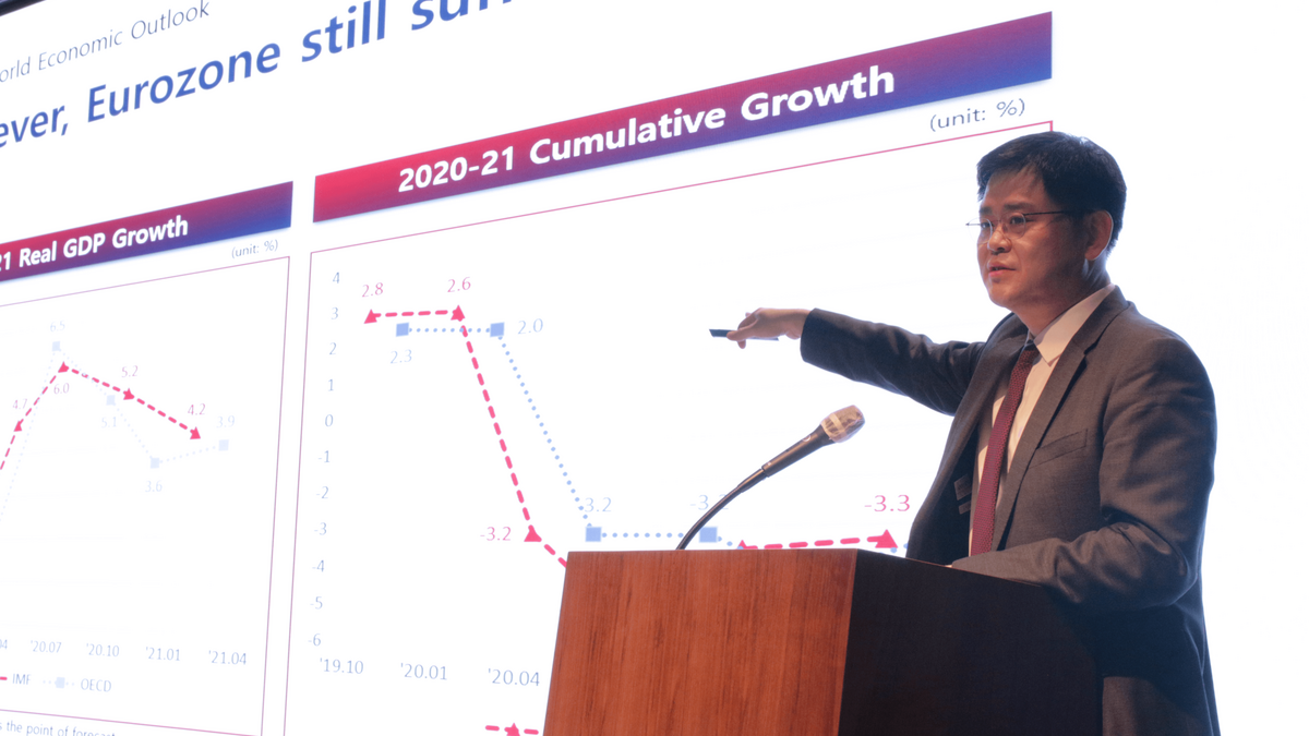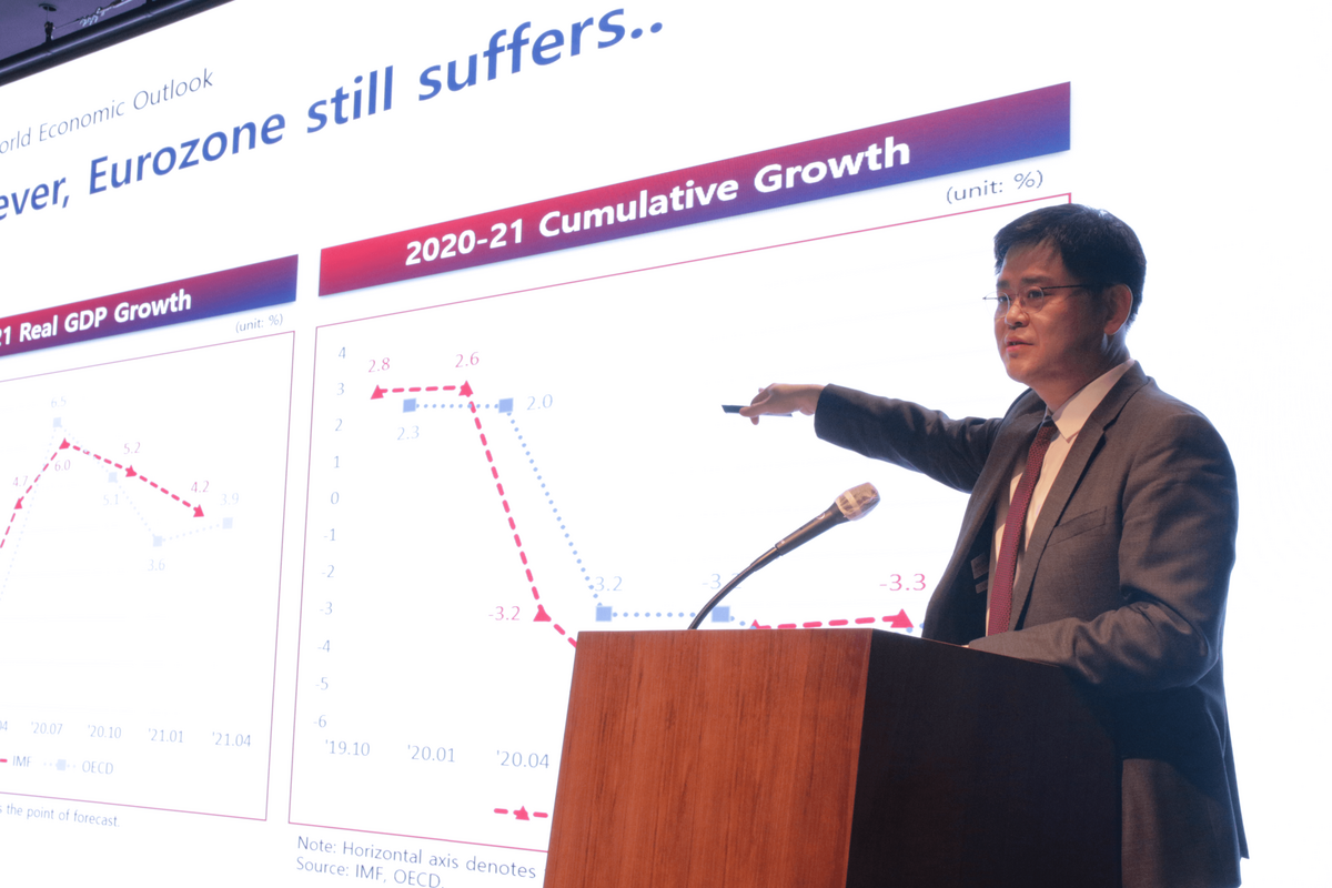 이러한 정부 정책에 따라 한국의 공공 부채가 급증하고 있지만, 이는 대부분 관리 가능한 수준으로 유지될 것으로 보이며, 한국은행에서 발표한 2021-2022년 경제 전망에 따라 한국의 민간 소비 성장률 2.0%, 설비 투자 5.3%, 건설투자 0.8%, 상품수출 6% 등 2021년 성장률이 반등할 것으로 예상된다. 또한, 업종별, 부문별 회복속도가 다르며, 제조업의 경우 V자 반등이 가능할 것으로 예상되지만, 대면·서비스업은 끝없는 부진이 지속될 것으로 보인다. 이날 행사에서는 이번 팬데믹 사태로 디지털화, 탈탄소화 등 코로나19 이전부터 시작된 변화가 급격히 가속화되고 있다는 점이 강조되었다.