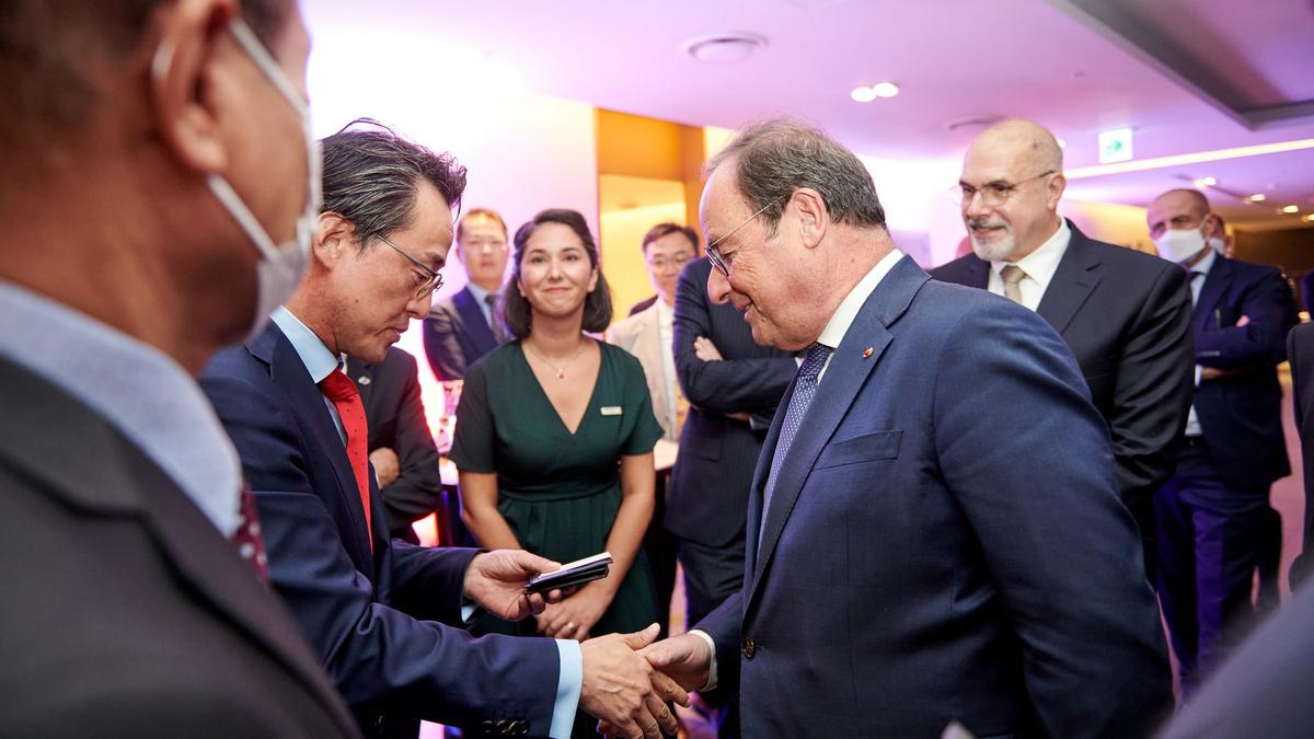 지난 9월 19일, 한불상공회의소는 프랑수아 올랑드 전 프랑스 대통령을 맞이하여 초청 만찬 행사를 주최했다. 2022 테크포굿 투어 프로그램의 일환이었던 본 행사는 노보텔 앰배서더 동대문에서 개최되어 테크포굿 행사의 프랑스 스타트업 대표단을 비롯하여 70 여명의 한불상공회의소 회원들이 참석했다.