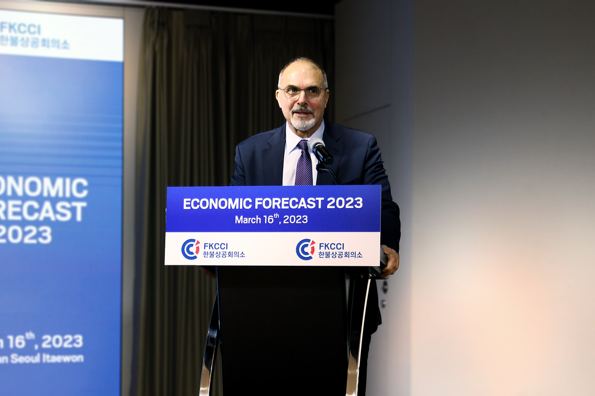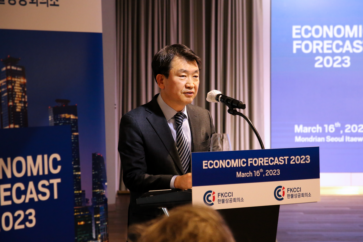 전 세계 방역 규제의 완화와 새로운 국제 정세의 등장으로 한국과 글로벌 거시 경제 트렌드가 뒤바뀌고 있다. 이에 한불상공회의소는 지난 3월 16일 2023년의 한국과 세계의 경제적 전망을 둘러싼 인사이트를 제공하기 위해 2023 경제전망 포럼을(FKCCI Economic Forecast 2023) 개최하였고 같은 날 70여 명이 넘는 한국 및 해외 비즈니스 커뮤니티 회원들이 몬드리안 서울 이태원 호텔에 자리하였다.