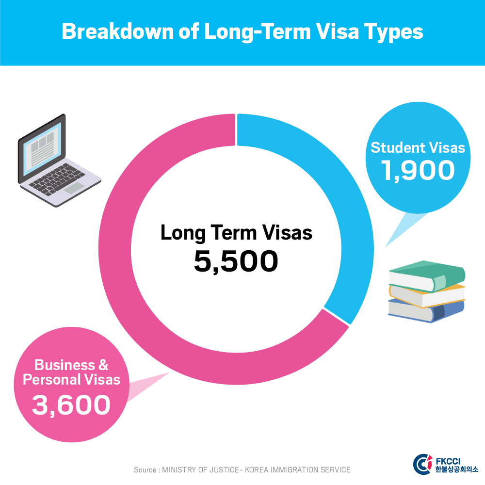비즈니스 비자의 경우 전년 대비 비교적 안정세를 유지하여 이번 상승세의 상당 부분은 다른 비자를 통해 유입된 것으로 확인되었다. 그중 워킹홀리데이 비자(H1)는 프로그램 시작 이후 처음으로 600건을 돌파하였고, 11월 기준 학생 비자(D2) 소지자가 무려 1,900명에 이르렀으며, 연중에는 거의 3,000명에 육박하는 전례 없는 최고치를 기록했다.