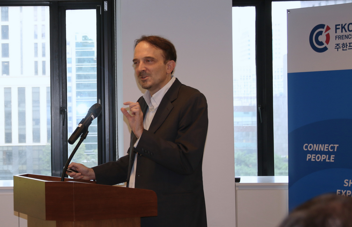 세미나는 FKCCI CEO 소냐 샤이예브 김(Sonia CHAIEB KIM)의 환영사로 시작되었으며, 이어 FKCCI 회장 다비드-피에르 잘리콩(David-Pierre JALICON)이 한국 내 프랑스의 존재와 문화적 특성에 대한 통찰을 공유하였습니다. 그는 한국의 GDP 대비 약 5%에 달하는 강력한 연구개발(R&D) 투자와 글로벌 어려움 속에서도 새로운 성장 동력을 창출할 수 있는 역량을 강조했습니다.